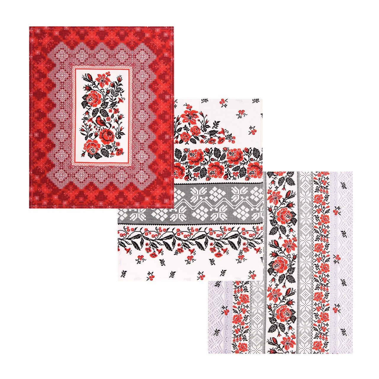 165 / красный / Свирель / Орнамент / 200 / Рогожка / Набор полотенец для кухни из рогожки, размер 45х60, 3 штуки в упаковке. / Ивановский текстиль / 45x60 / Прямоугольник / 3 / Рогожка / Универсальный