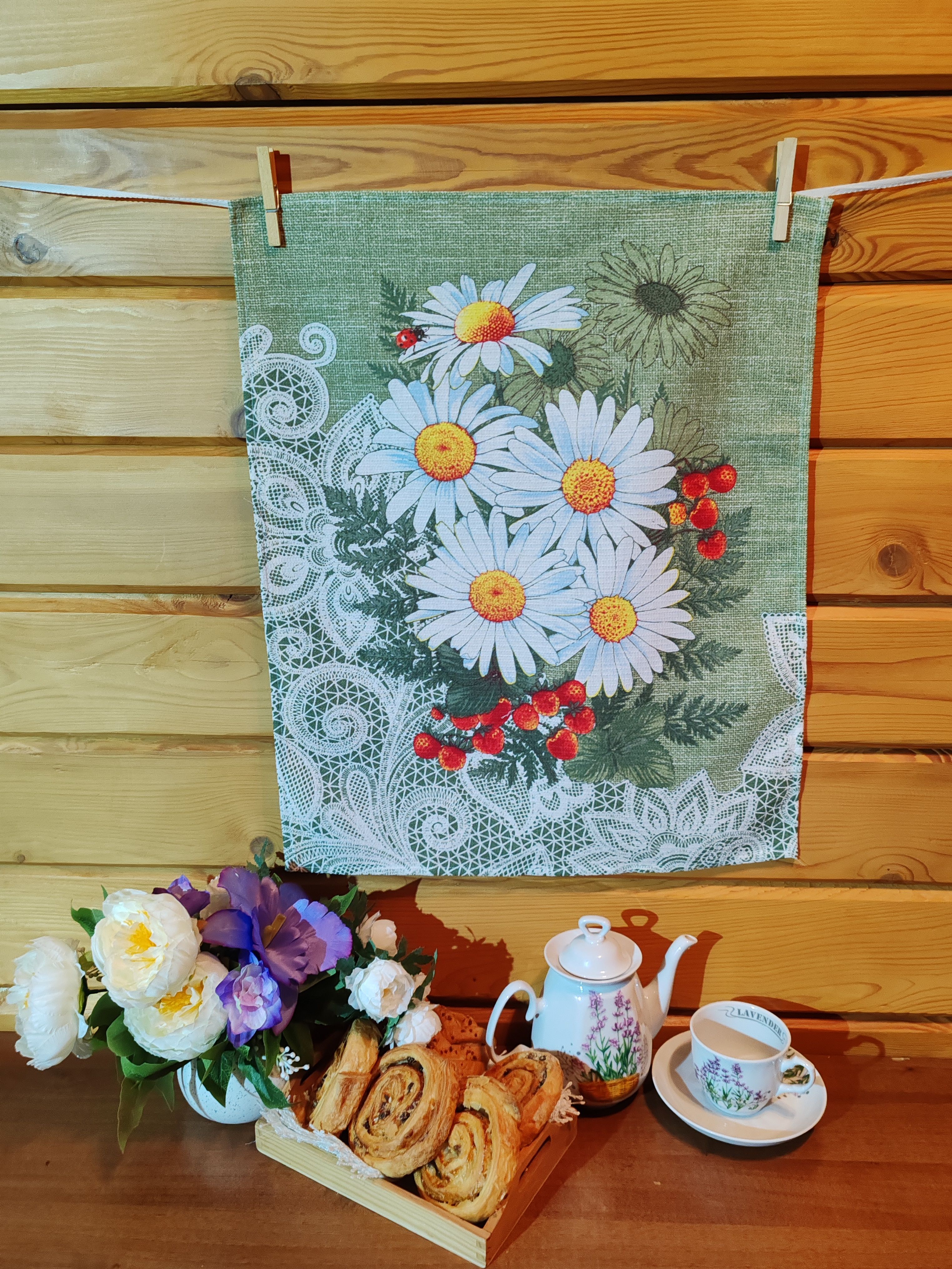 165 / серый / Обниманго / Ромашки / 200 / Рогожка / Набор полотенец для кухни из рогожки, размер 45х60, 3 штуки в упаковке. / Ивановский текстиль / 45x60 / Прямоугольник / 3 / Рогожка / Универсальный