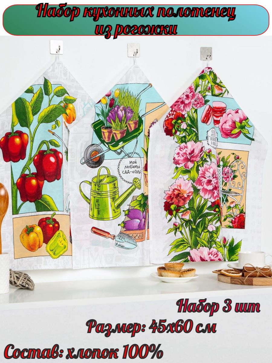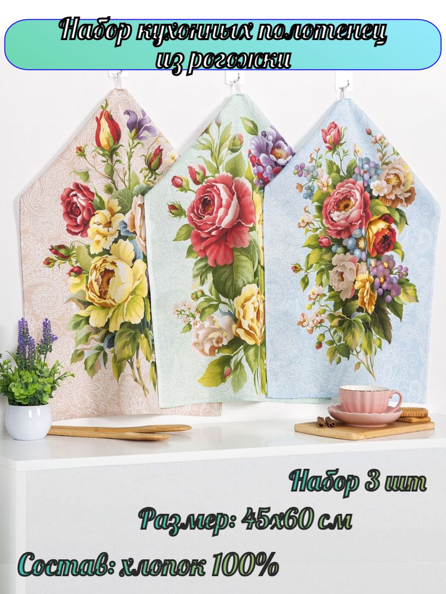 165 / разноцветный / Ля рошель / Цветы / 200 / Рогожка / Набор полотенец для кухни из рогожки, размер 45х60, 3 штуки в упаковке. / Ивановский текстиль / 45x60 / Прямоугольник / 3 / Рогожка / Универсальный