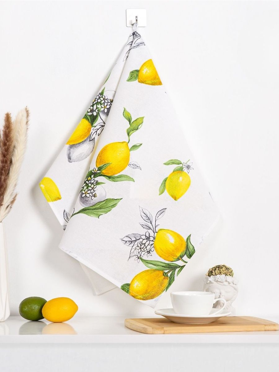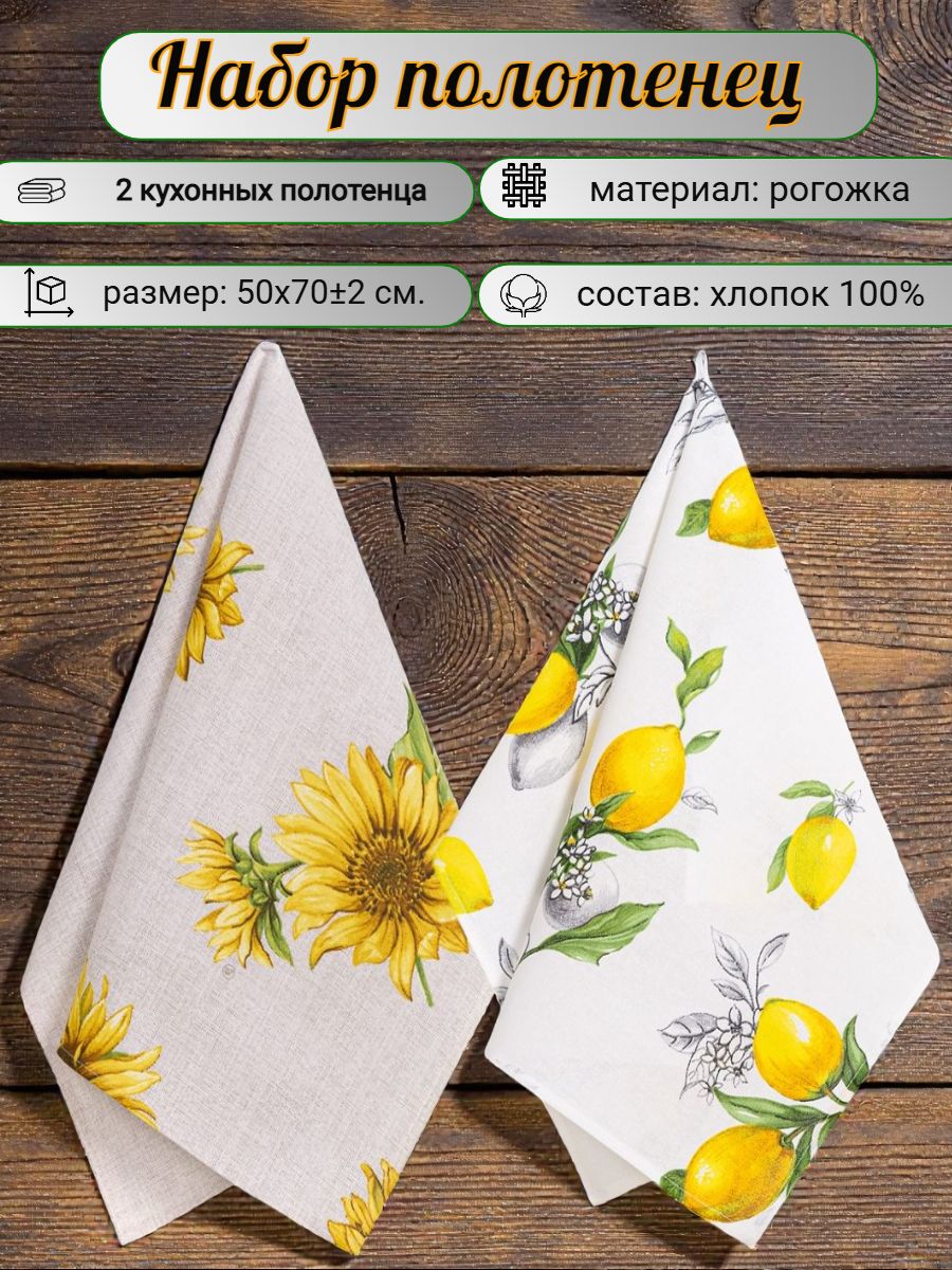 165 / белый / Лимон / Фрукты / 200 / Рогожка / Набор полотенец для кухни из рогожки, размер 50х70, 2 штуки в упаковке. / Ивановский текстиль / 50x70 / Прямоугольник / 2 / Рогожка / Универсальный