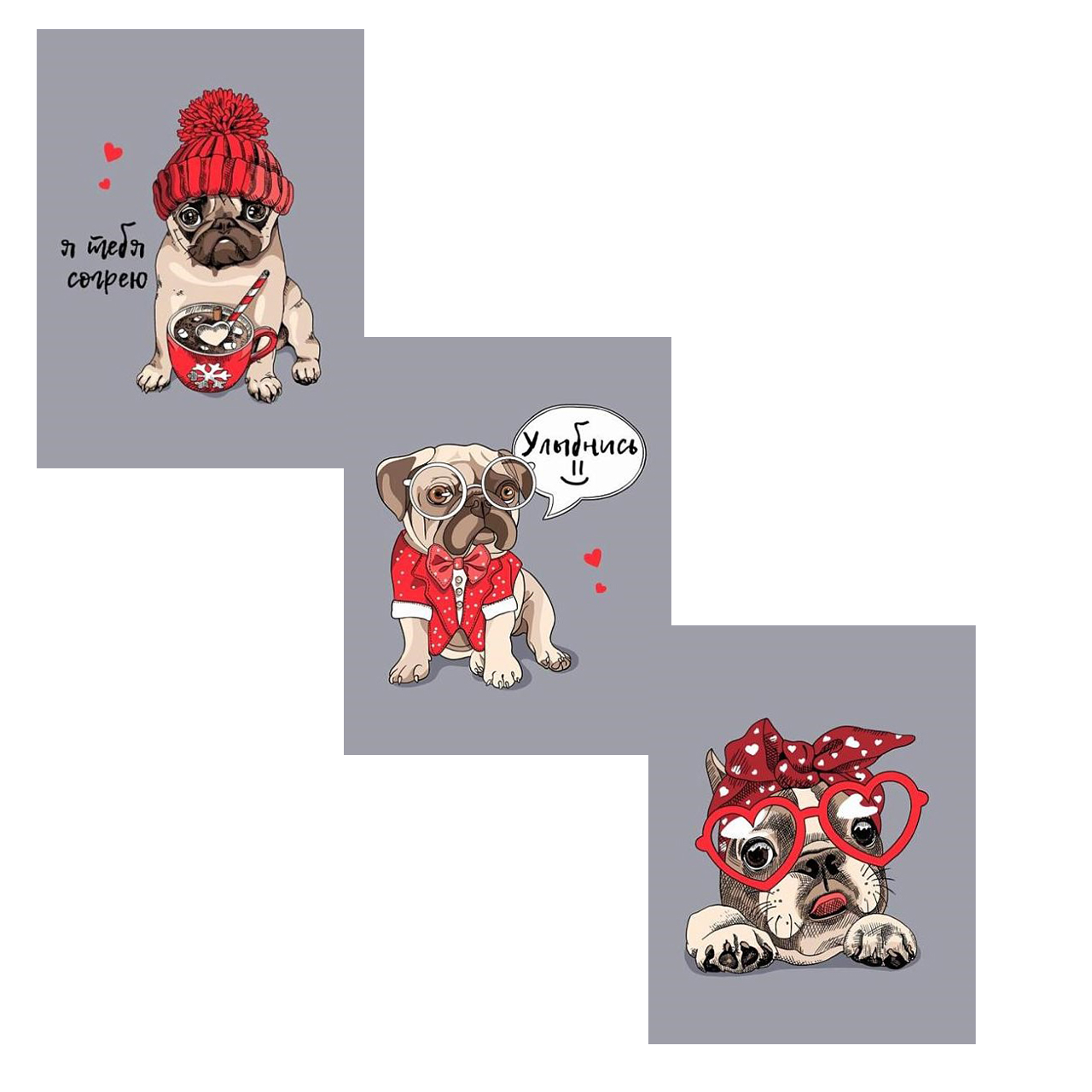 165 / красный / Песики / Собака / 200 / Рогожка / Набор полотенец для кухни из рогожки, размер 45х60, 3 штуки в упаковке. / Ивановский текстиль / 45x60 / Прямоугольник / 3 / Рогожка / Универсальный