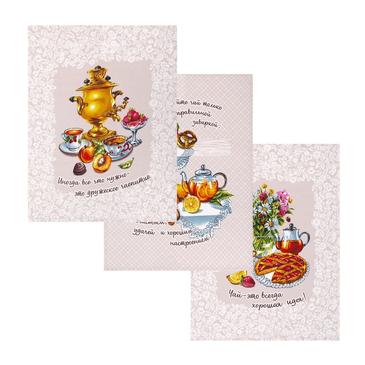 165 / бежевый / Чаепитие / Еда и напитки / 200 / Вафельное полотно / Набор полотенец для кухни, вафельное полотно, размер 45х60, 3 штуки в упаковке. / Ивановский текстиль / 45x60 / Прямоугольник / 3 / Вафельная / Универсальный