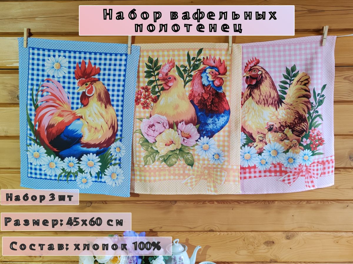 165 / разноцветный / - / Птицы / 200 / Вафельное полотно / Набор полотенец для кухни, вафельное полотно, размер 45х60, 3 штуки в упаковке. / Ивановский текстиль / 45x60 / Прямоугольник / 3 / Вафельная / Универсальный