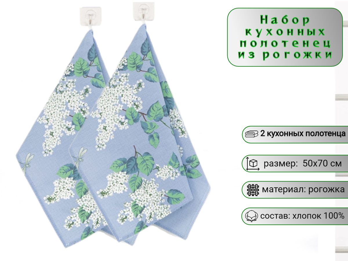 165 / синий / Аромат сирени / Цветы / 200 / Рогожка / Набор полотенец для кухни из рогожки, размер 50х70, 2 штуки в упаковке. / Ивановский текстиль / 50x70 / Прямоугольник / 2 / Рогожка / Универсальный