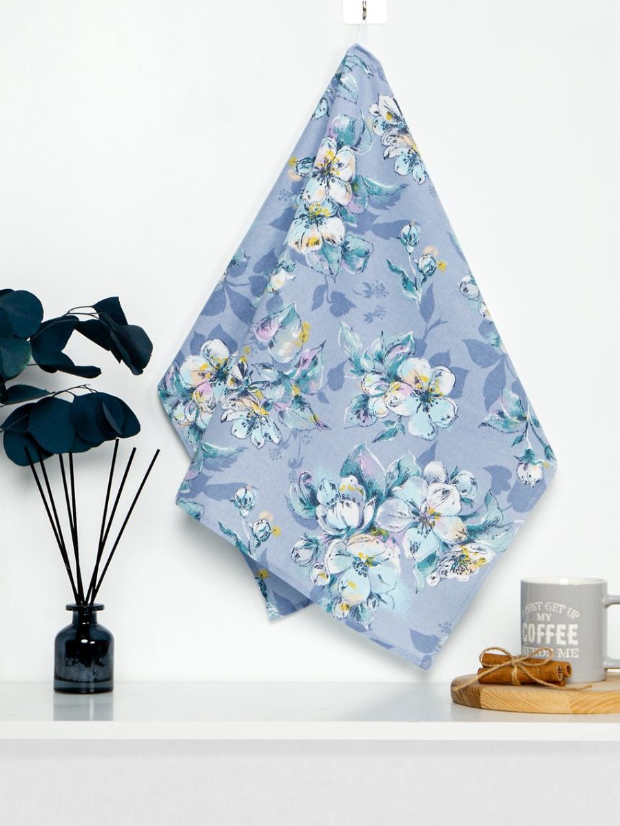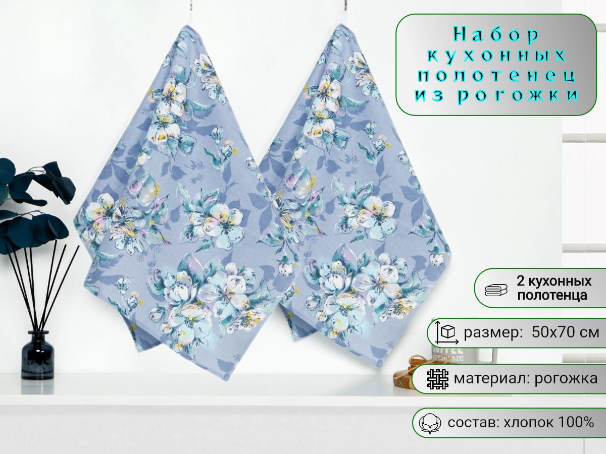 165 / синий / Яблоневый аромат / Цветы / 200 / Рогожка / Набор полотенец для кухни из рогожки, размер 50х70, 2 штуки в упаковке. / Ивановский текстиль / 50x70 / Прямоугольник / 2 / Рогожка / Универсальный