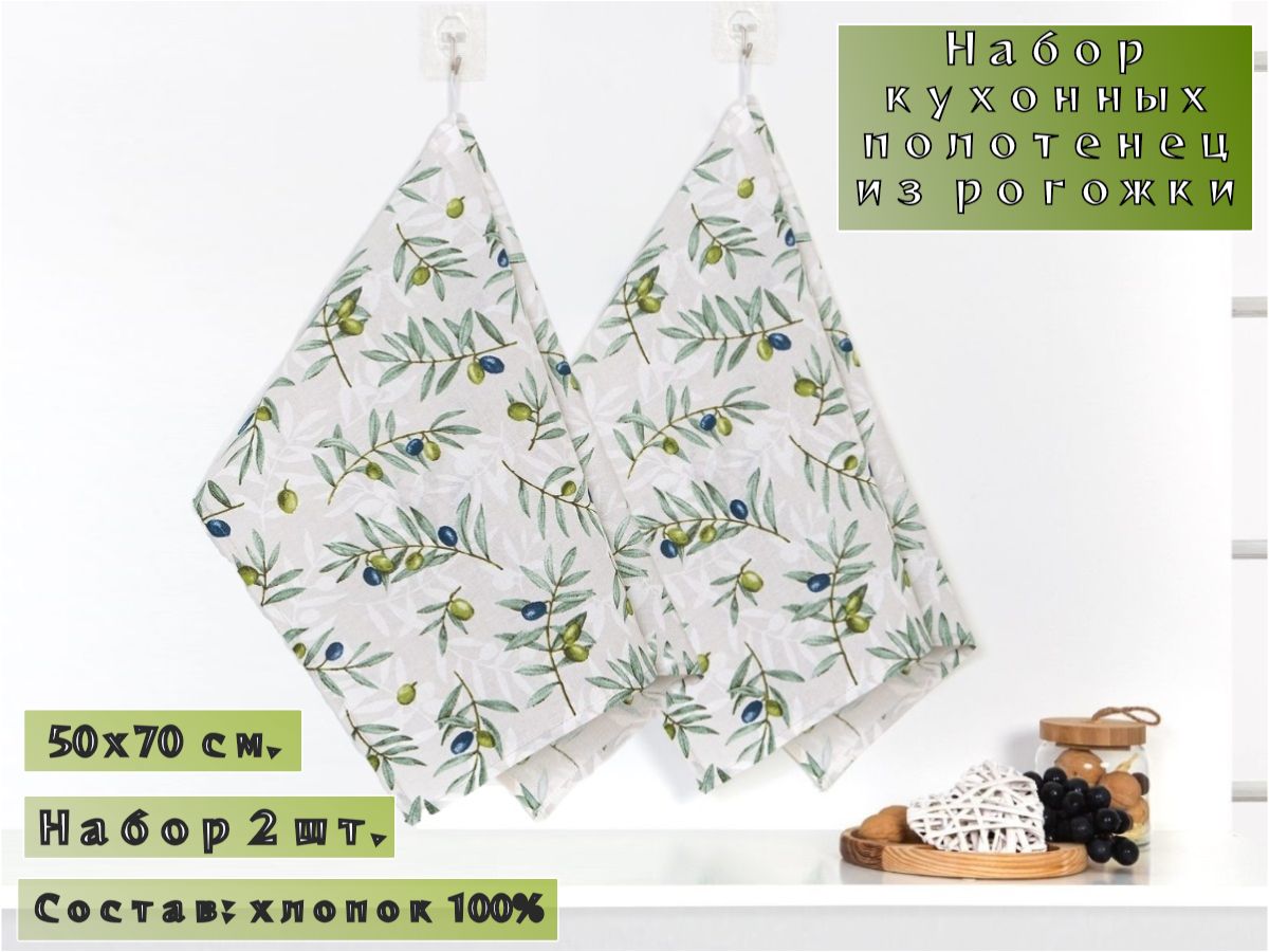 165 / белый / Долина / Растения / 200 / Рогожка / Набор полотенец для кухни из рогожки, размер 50х70, 2 штуки в упаковке. / Ивановский текстиль / 50x70 / Прямоугольник / 2 / Рогожка / Универсальный