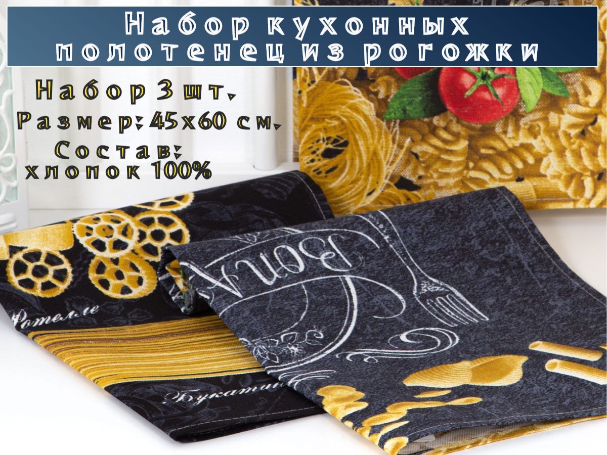 165 / черный / фетучини / Еда и напитки / 200 / Рогожка / Набор полотенец для кухни из рогожки, размер 45х60, 3 штуки в упаковке. / Ивановский текстиль / 45x60 / Прямоугольник / 3 / Рогожка / Универсальный