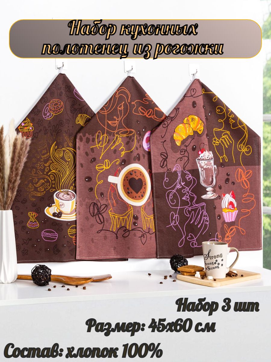 В комплекте 3 кухонных полотенца размером 45х60 прямоугольной формы. Полотенца изготовлены из рогожки (100% хлопок), станут прекрасным подарком родным и близким на любой праздник. Яркий рисунок, праздничный дизайн понравится каждой хозяйке. Рогожка – ткань широкого применения, обладает высокой прочностью и отличной устойчивостью к истиранию. Полотенца создадут атмосферу праздника, станут незаменимыми помощниками на кухне, так прекрасно впитывают влагу, помогают убирать загрязненные поверхности, держат форму и быстро сохнут. Комплект кухонных полотенец упакован в прозрачный пакет.