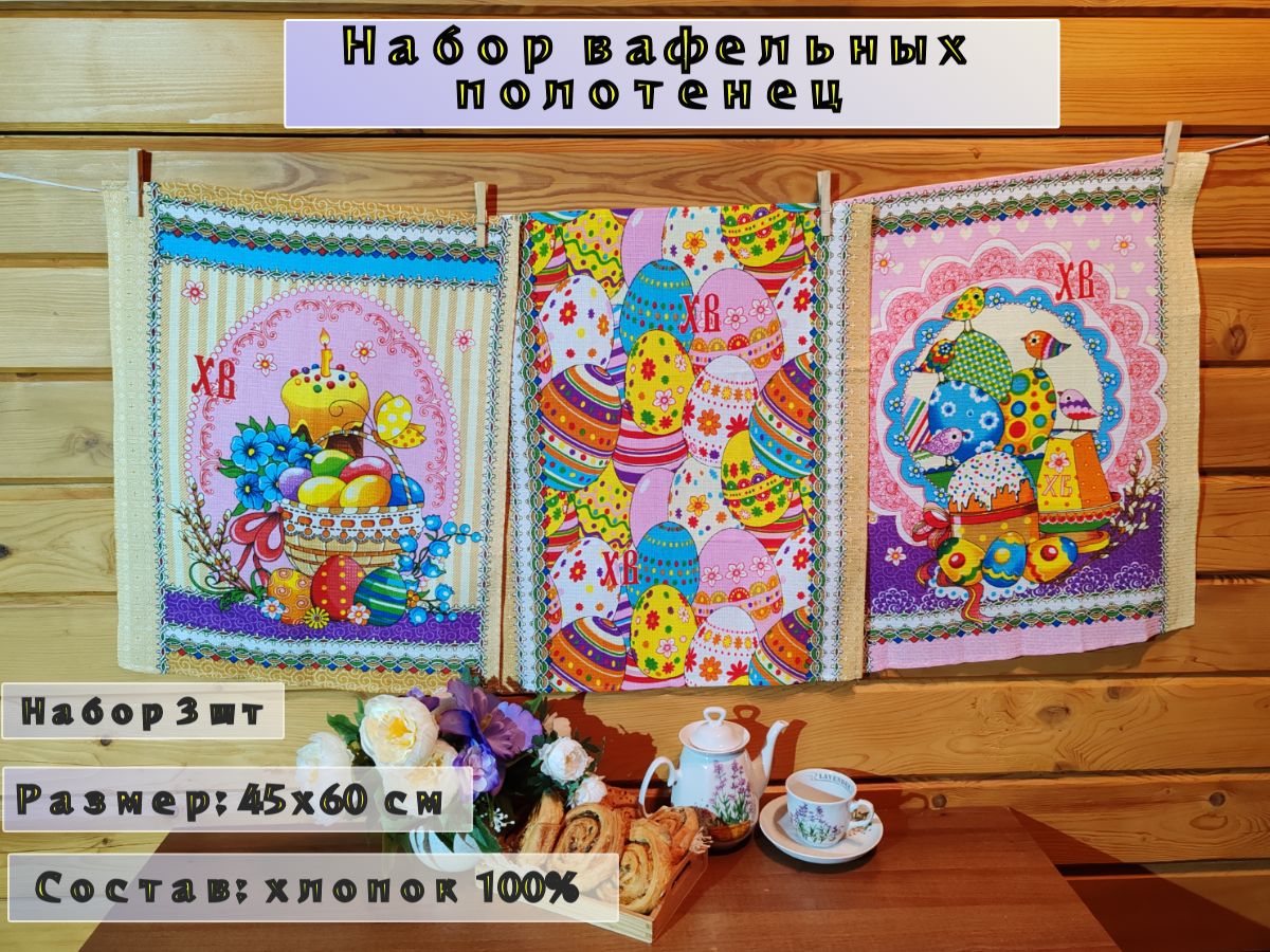 Набор кухонных полотенец, 3 шт , 45х60 см , вафельное