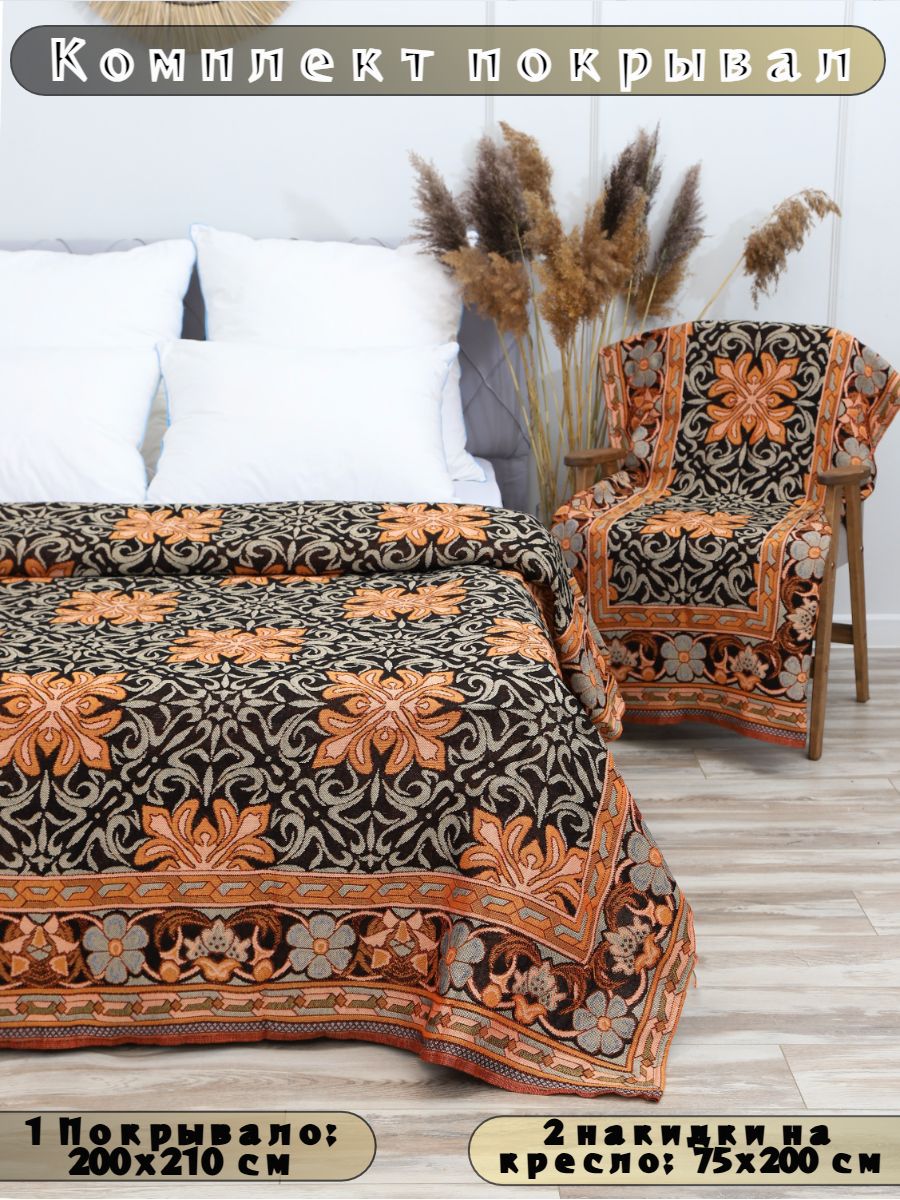 Накидки на диван и кресла комплект, комплект покрывало 200х210 и 2 дивандека для кресла 75х200