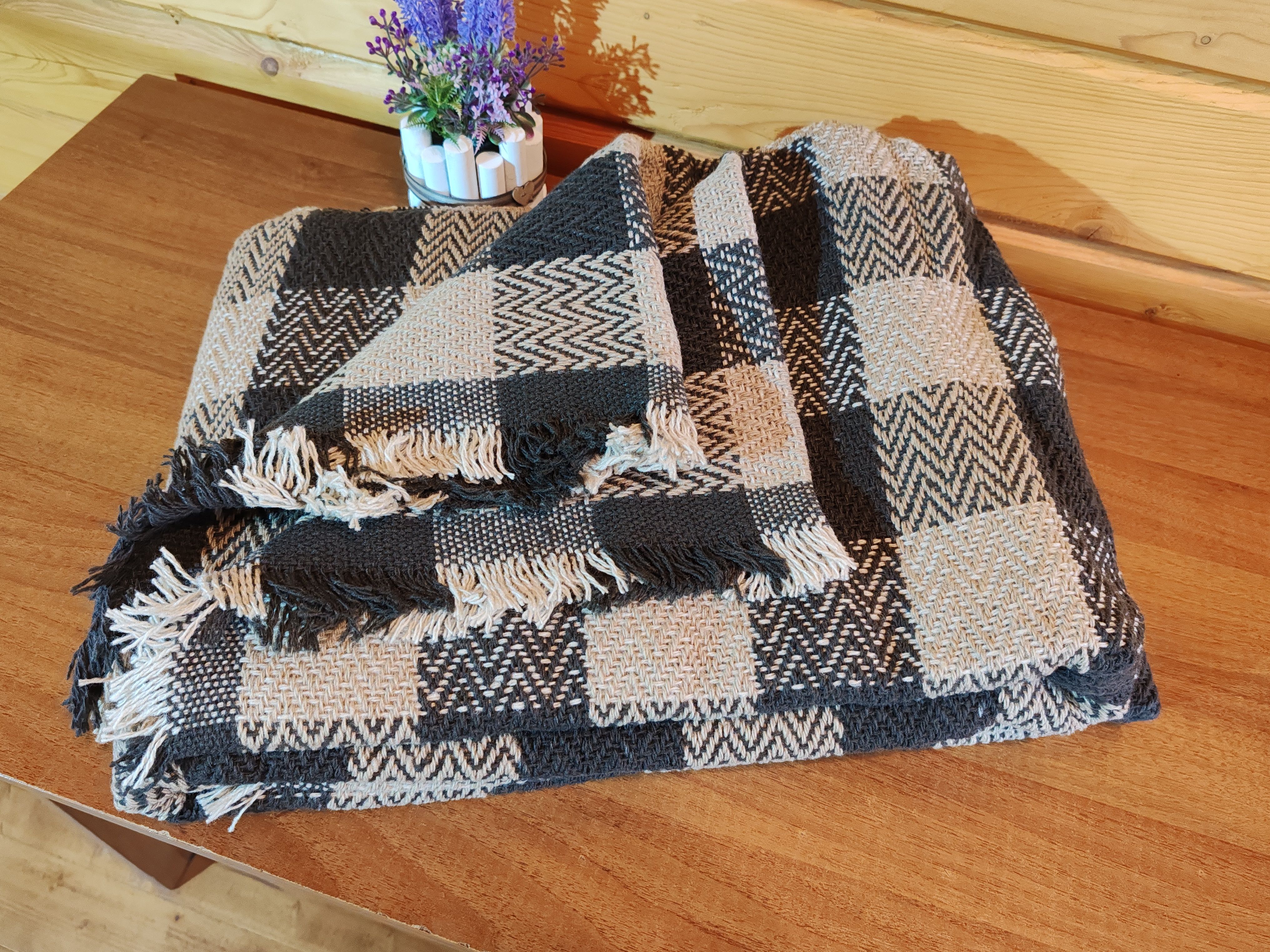 Плед «Клетчатый» превосходный выбор для тех, кто ищет качественный, прочный плед по доступной цене. Клетчатый плед имеет классическую клетчатую расцветку, фактура елочка в бежево-коричневых оттенках, отделан по краям бахромой - легко вписывается в интерьер. Размеры Клетчатого пледа: 190х210. Плед плотный: 500 гр/м2, поэтому он быстро согревает и хорошо удерживает тепло. Преимуществом пледа можно назвать гипоаллергенность, он изготовлен из 100% полиакрилонитрила – искусственного заменителя шерсти, поэтому подходит для использования детьми и их взрослыми родителями. Плед можно использовать и в качестве покрывала или накидки на диван, кровать или кресло.