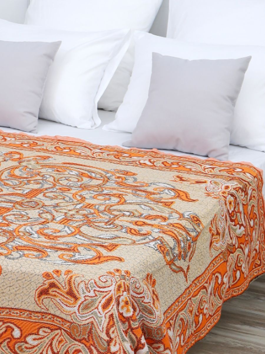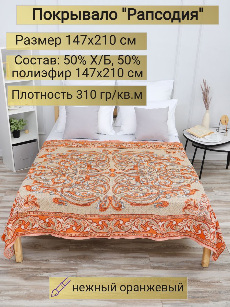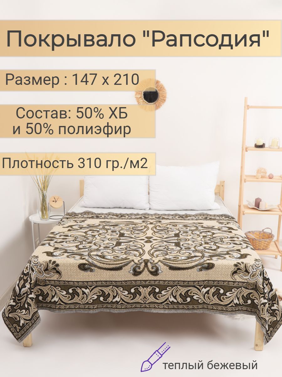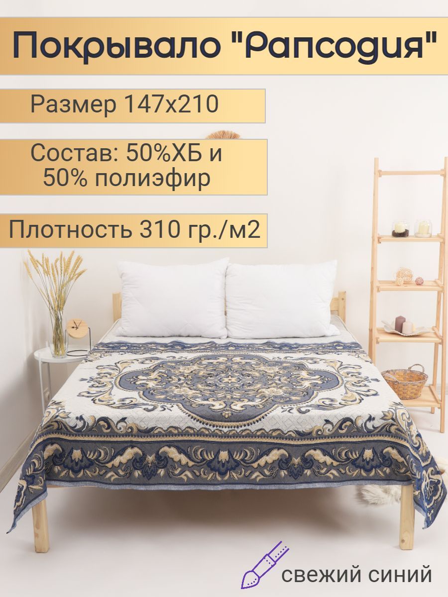 Покрывало это важный элемент декора спальни или гостиной, которое выполняет ещё и защитную функцию. Преимуществом наших покрывал можно назвать лёгкость, износостойкость и неприхотливость в уходе. Расцветка вписывается в любой интерьер. Покрывало "Рапсодия" 147х210 см, состав: 50%ХБ и 50% полиэфир.