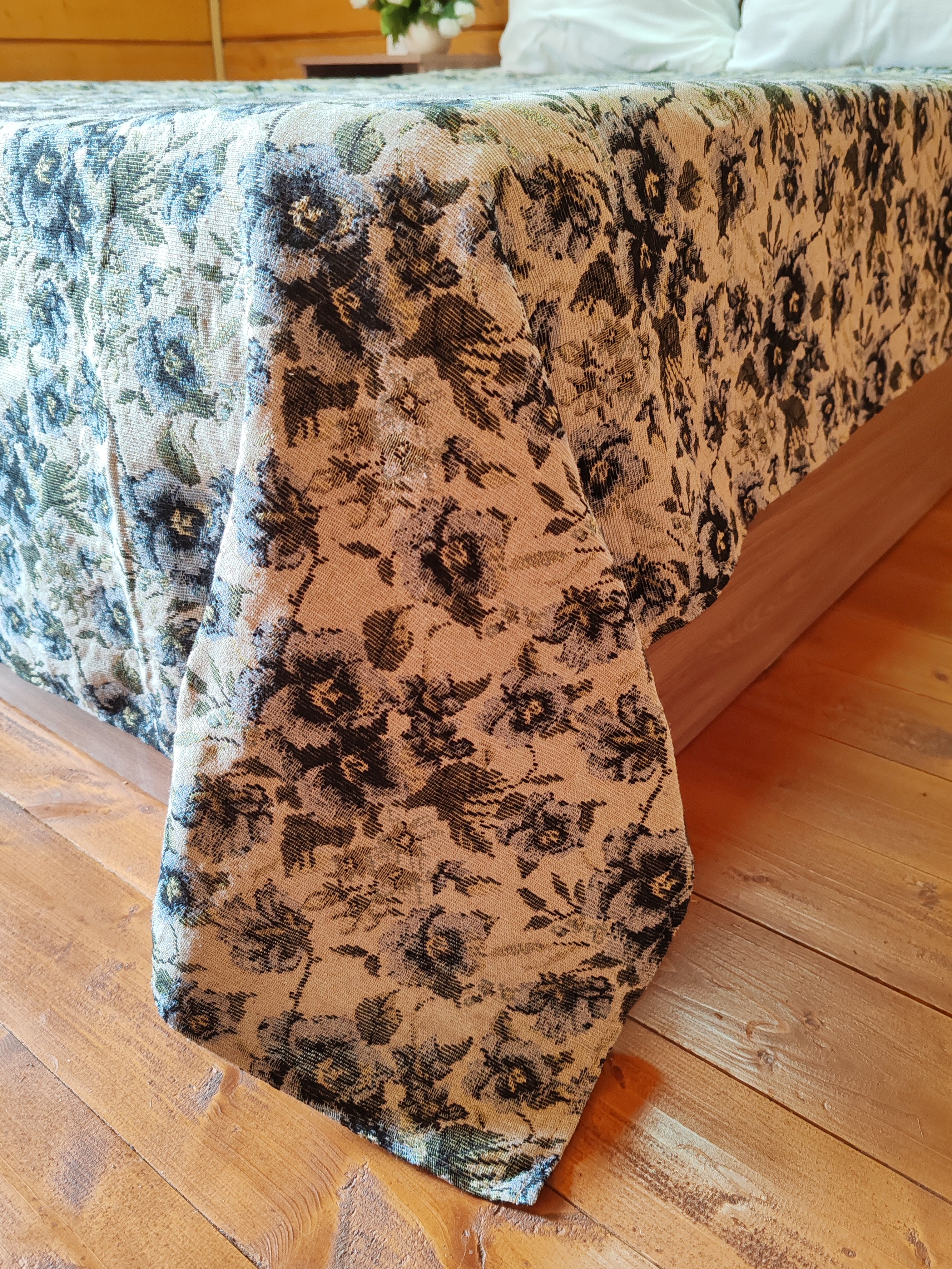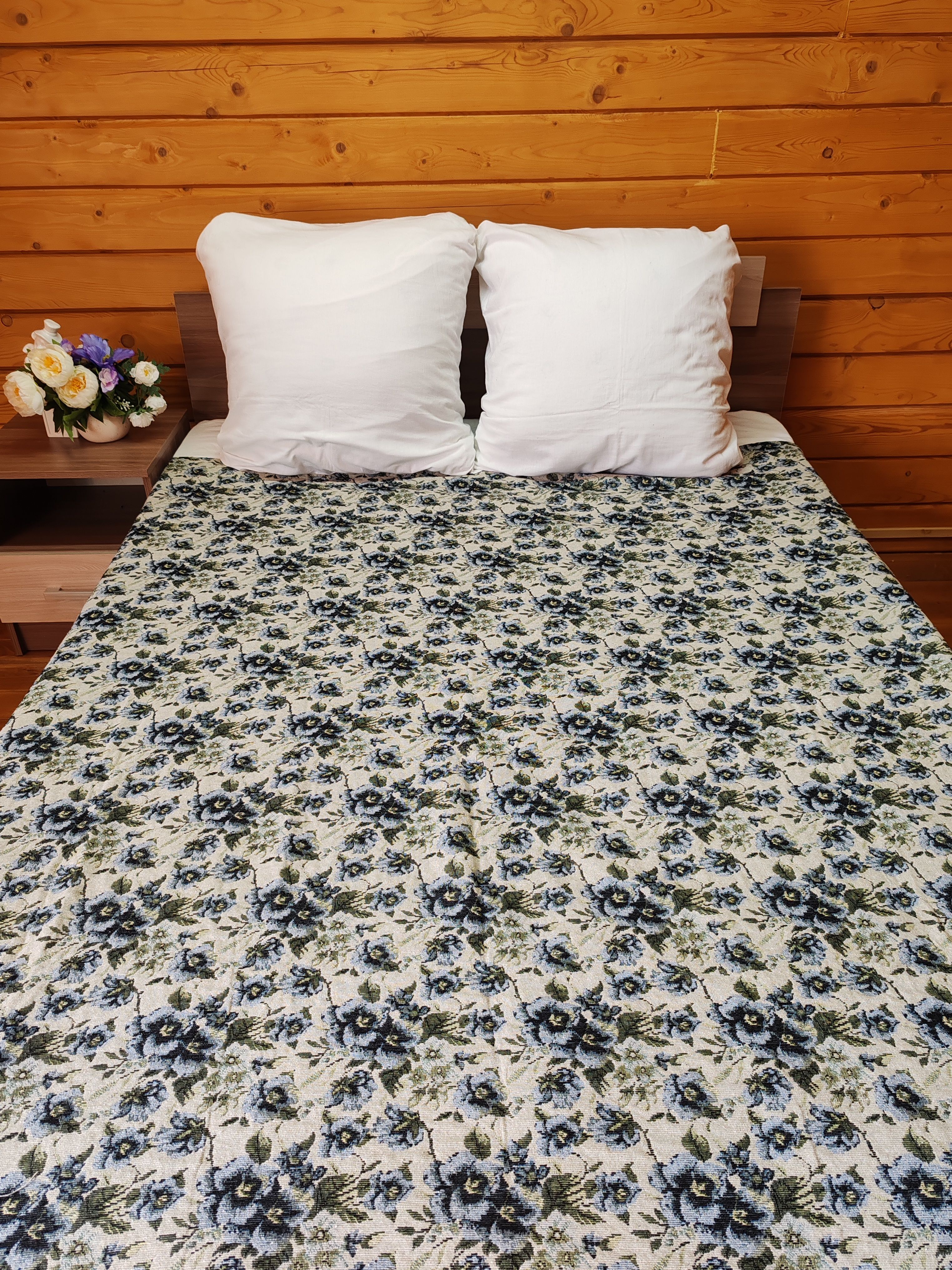 Гобеленовое покрывало на кровать создано чтобы украшать интерьер гостиной, спальни или детской комнаты. Гобеленовой накидкой на диван можно прикрыть кресло, кровать, защитив таким образом постельное бельё от пыли и загрязнений. Кроме того, покрывало на диван может использоваться в качестве пледа или легкого одеяла. Накидка из гобелена состоит из хлопка и полиэстера, что делает его практичным в использовании и безопасным для здоровья. Возможна усадка готового изделия до 5-7%.Рекомендаций по уходу за изделием: Покрывала, пледы можно замачивать и стирать 1–2 раза в год в мягких моющих средствах без содержания хлора, а так же использовать машинную стирку. Но при этом следует учитывать, что после стирки в ручную или в стиральной машине, изделия дают небольшую усадку. Идеальный вариант ухода — это химическая чистка. После вышеперечисленных вариантов чистки, изделие следует повесить и расправить для его просушки. При соблюдении условий эксплуатации покрывало из гобелена прослужит вам долгие годы.