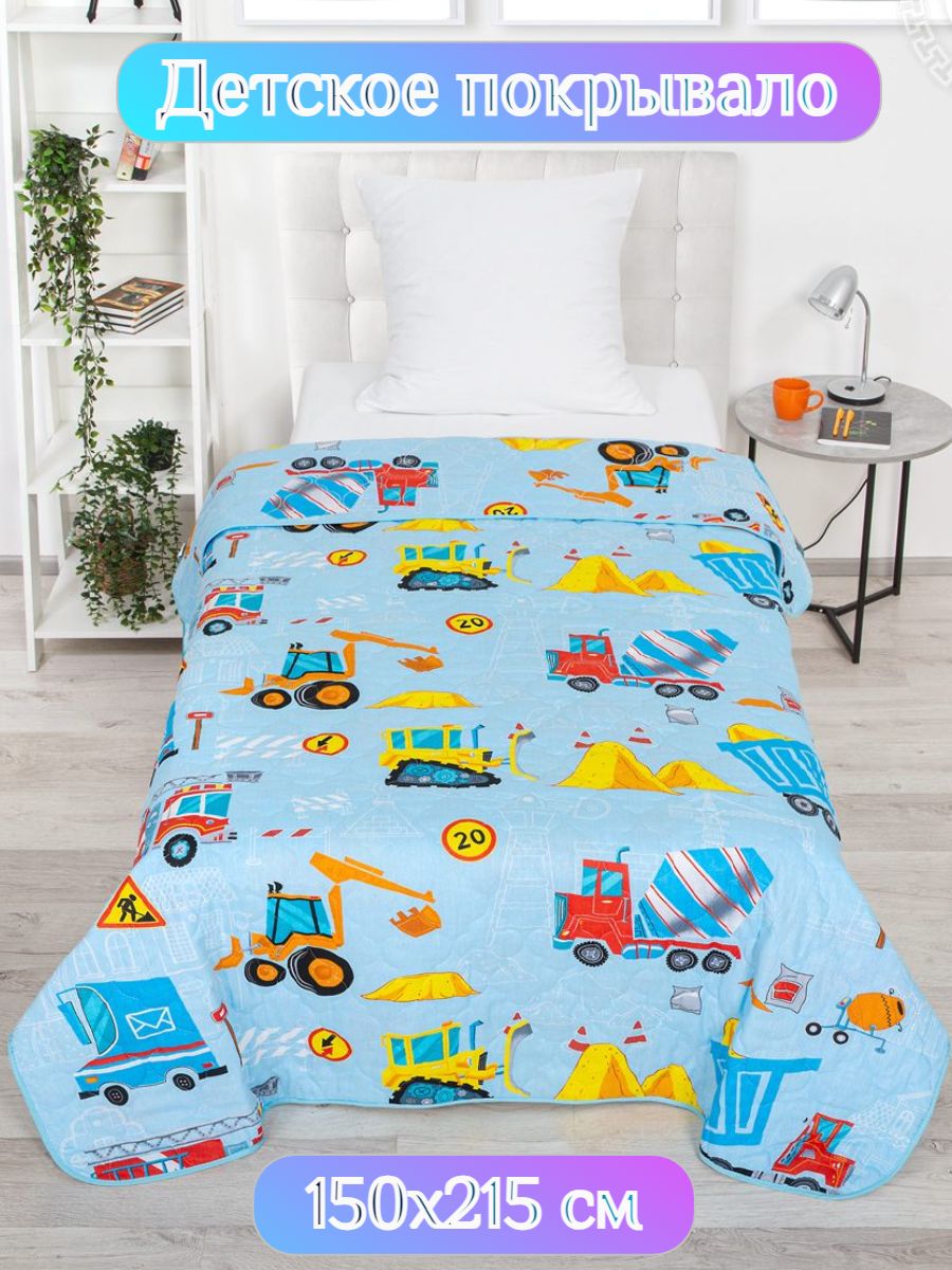 Размер покрывала 1,5 спальное, 150х215 см, подходит для детской кровати или дивана.