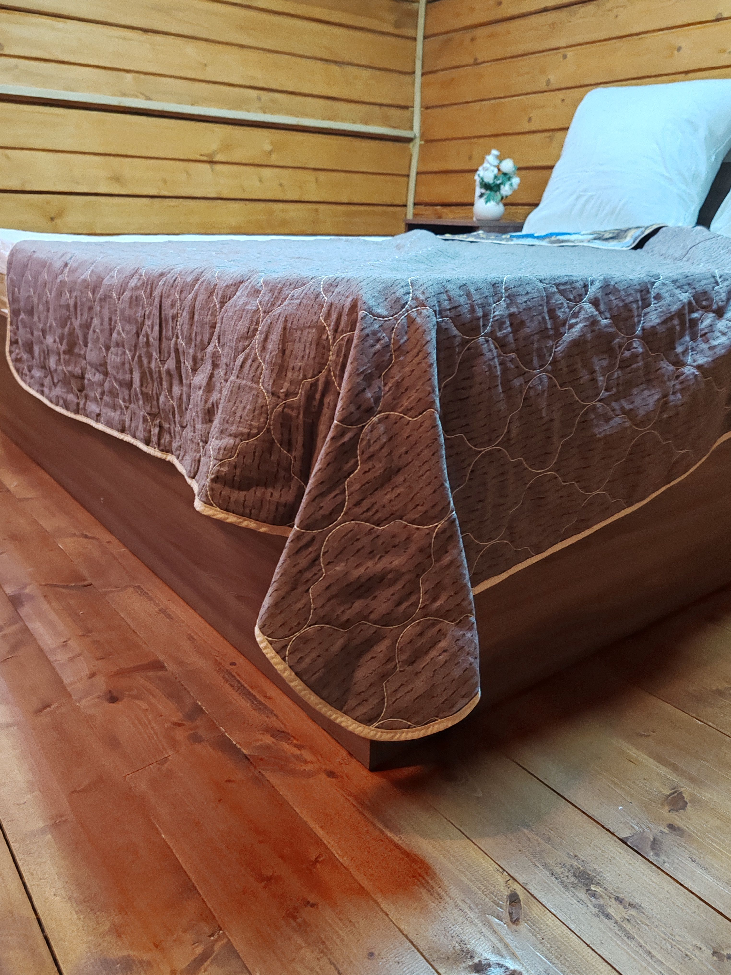 Покрывало – важная деталь интерьера, оно защищает мебель или постельное белье от загрязнения, а так же является ярким и практичным элементом декора комнаты. Снаружи изделия выполнены из поплина – материала, в основе которого лежит 100% хлопок. Он гиппоаллергенен, воздухопроницаем и износостоек. Наполнитель – полиэфирное волокно, лёгкое, хорошо сохраняет форму, не впитывает жидкость, обладает хорошими теплоизоляционными характеристиками.