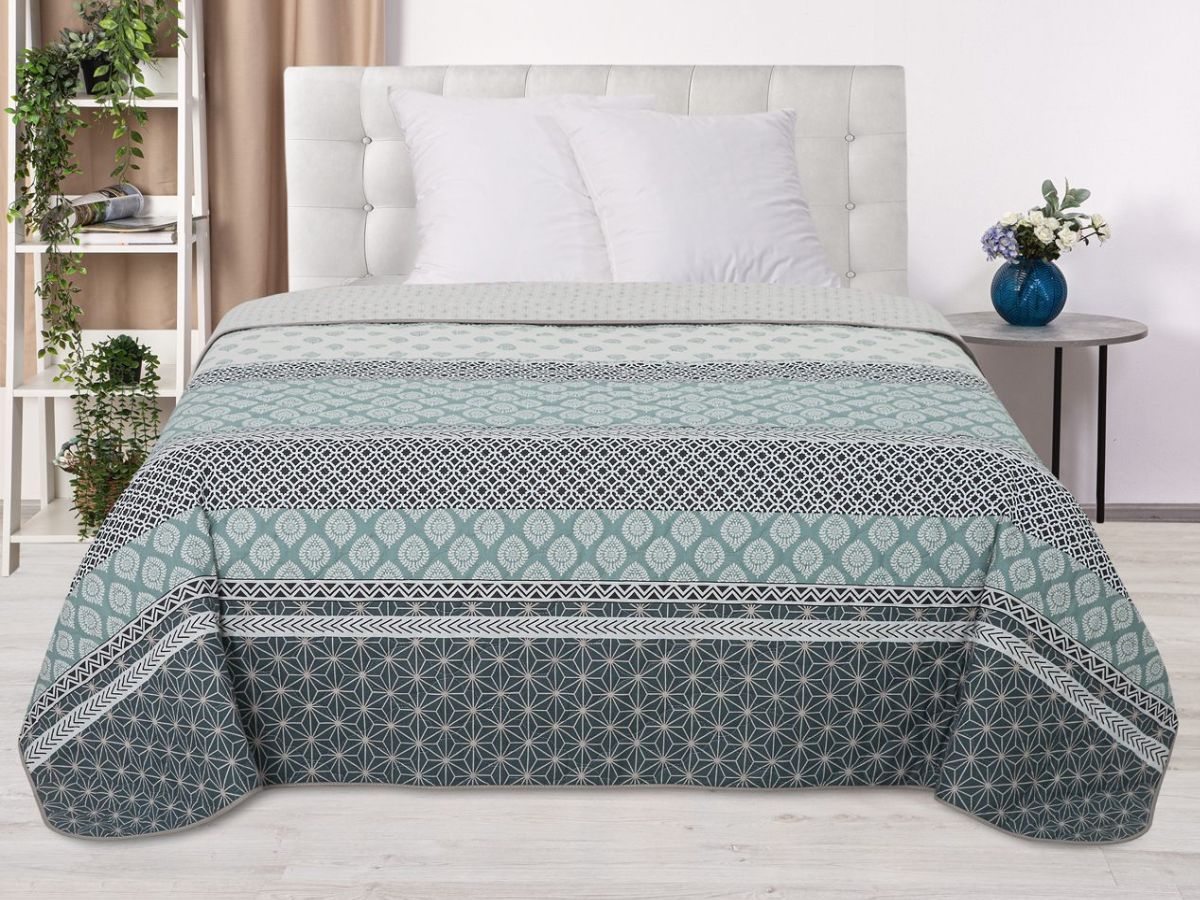 Стеганые покрывала из поплина – практичный и красивый элемент декора комнаты. Покрывало защищает постельное белье от загрязнений, а также выполняет декоративную функцию, меняя облик комнаты в лучшую сторону. Снаружи изделия выполнены из материала, в основе которого лежит 100% хлопок. Натуральное волокно не вызывает аллергии и абсолютно безопасно для здоровья. К главным достоинствам поплина относят также высокую воздухопроницаемость и износостойкость. В качестве наполнителя используется полиэфирное волокно. Оно отличается легкостью и высокими теплоизоляционными характеристиками и хорошо сохраняет форму.
