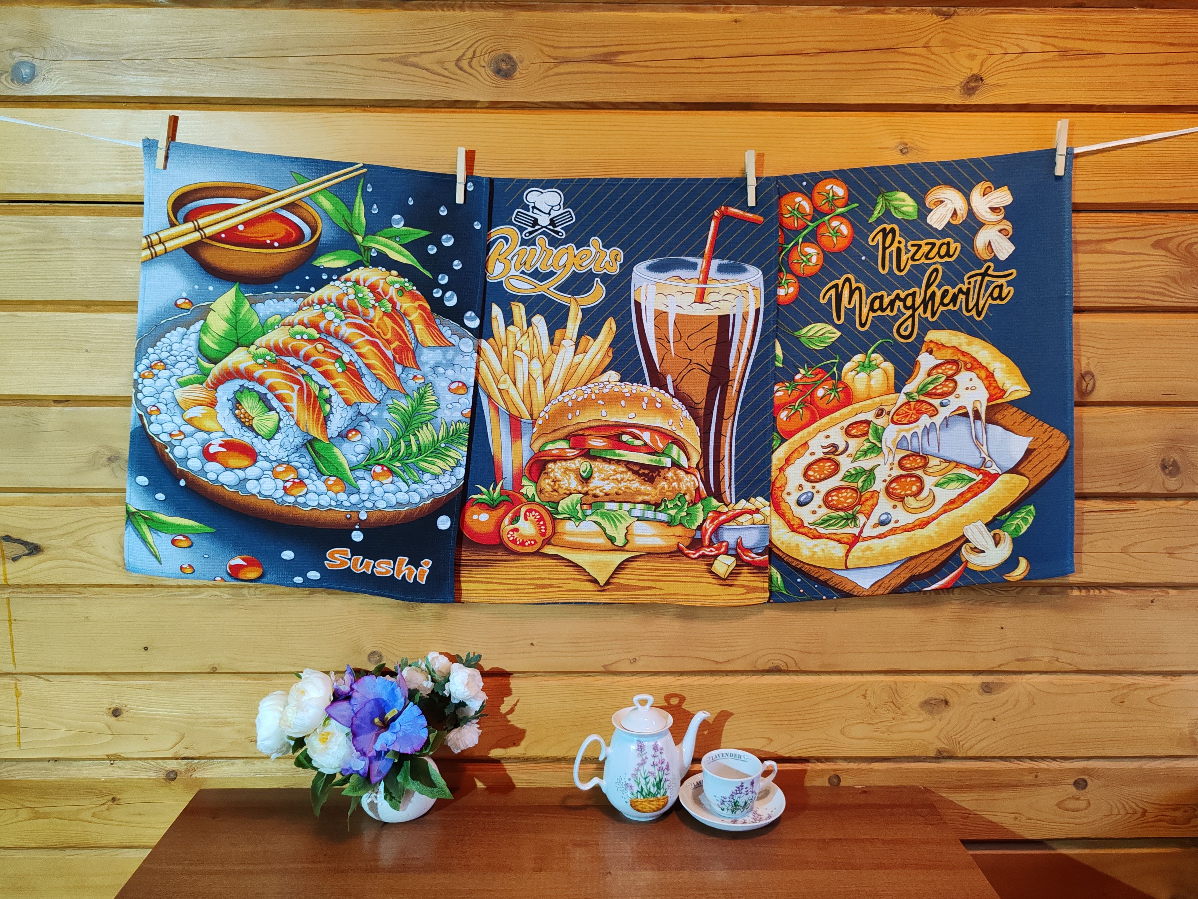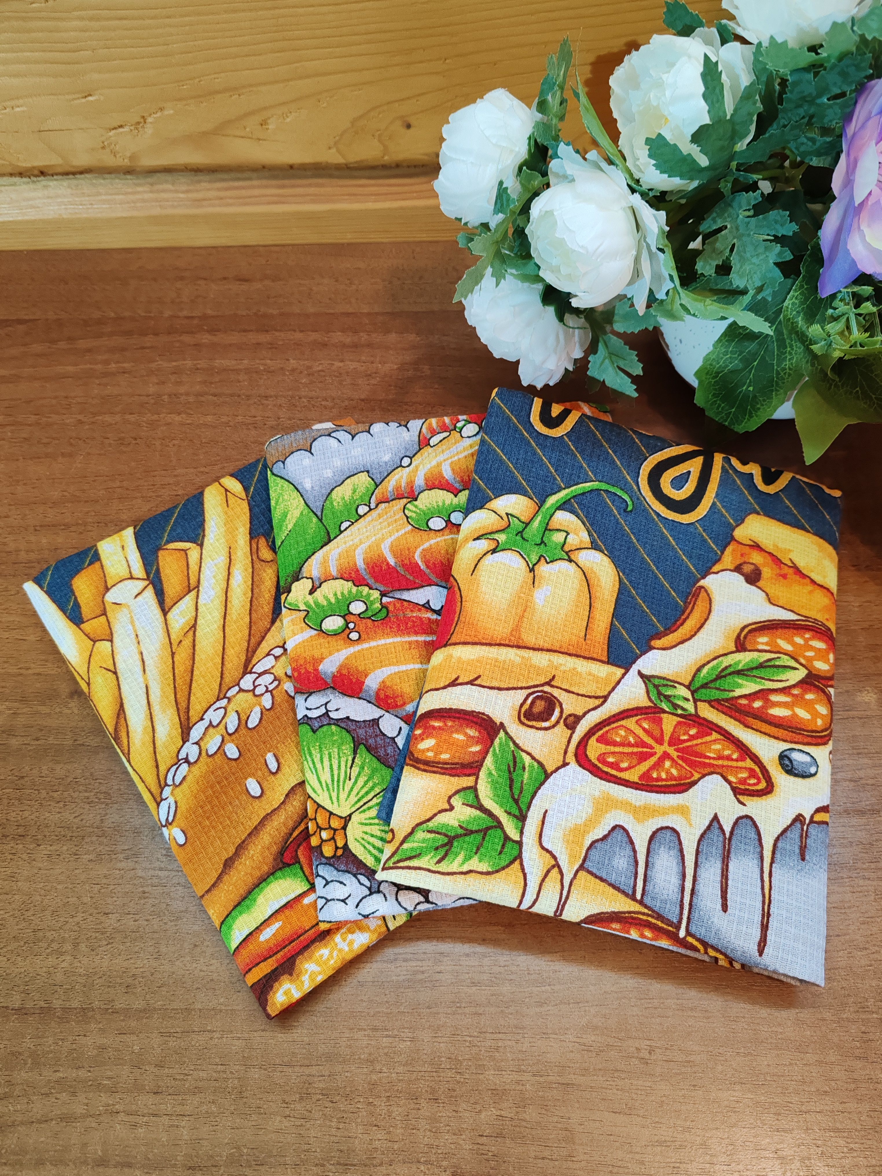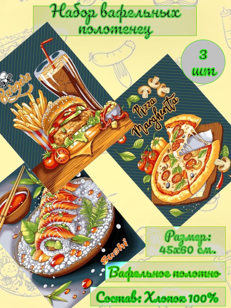 Набор полотенец для кухни из рогожки, размер 45х60, 3 штуки в упаковке.
