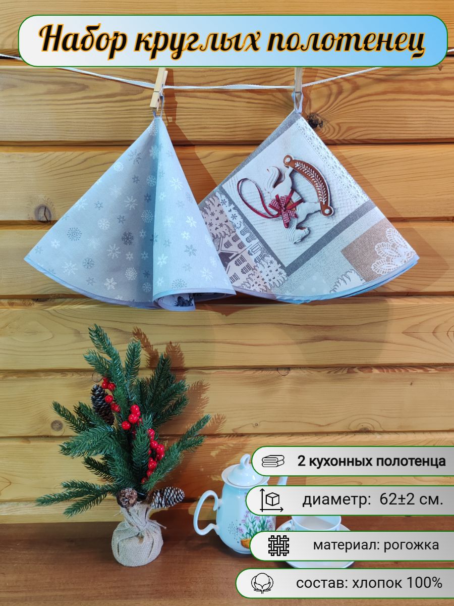 В комплекте 2 кухонных полотенца диаметром 64 сантиметра круглой формы. Полотенца изготовлены из рогожки (100% хлопок), станут прекрасным подарком родным и близким на любой праздник. Яркий рисунок, праздничный дизайн понравится каждой хозяйке. Рогожка – ткань широкого применения, обладает высокой прочностью и отличной устойчивостью к истиранию. Полотенца создадут атмосферу праздника, станут незаменимыми помощниками на кухне, так прекрасно впитывают влагу, помогают убирать загрязненные поверхности, держат форму и быстро сохнут. Комплект кухонных полотенец упакован в прозрачный пакет.