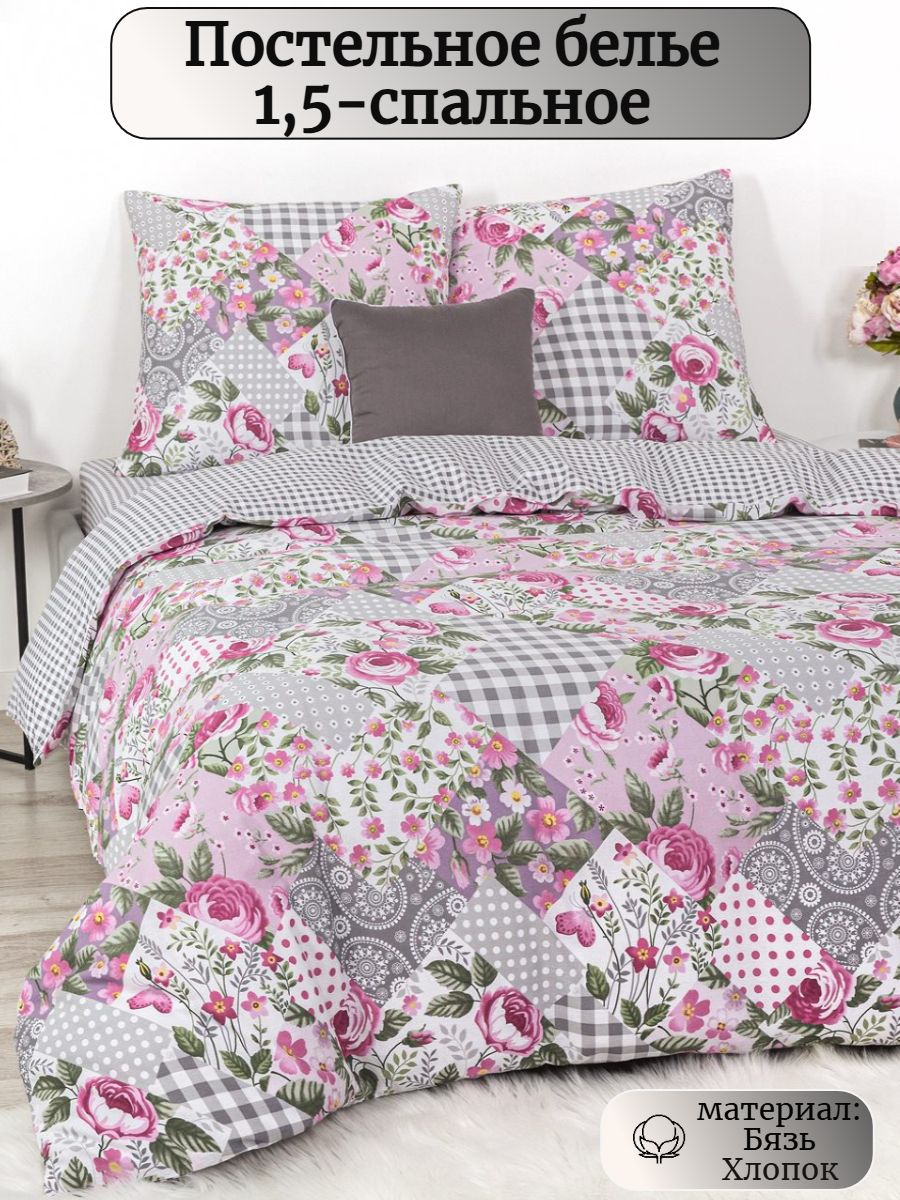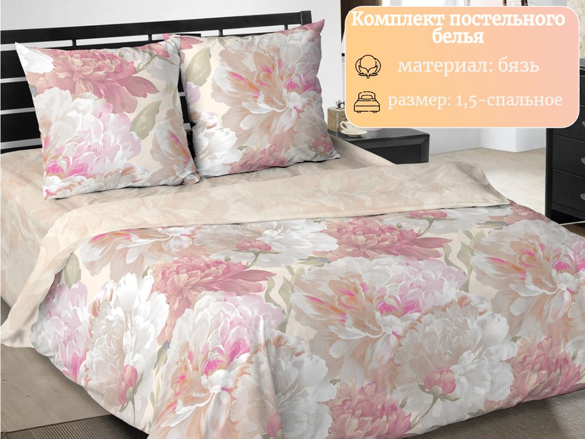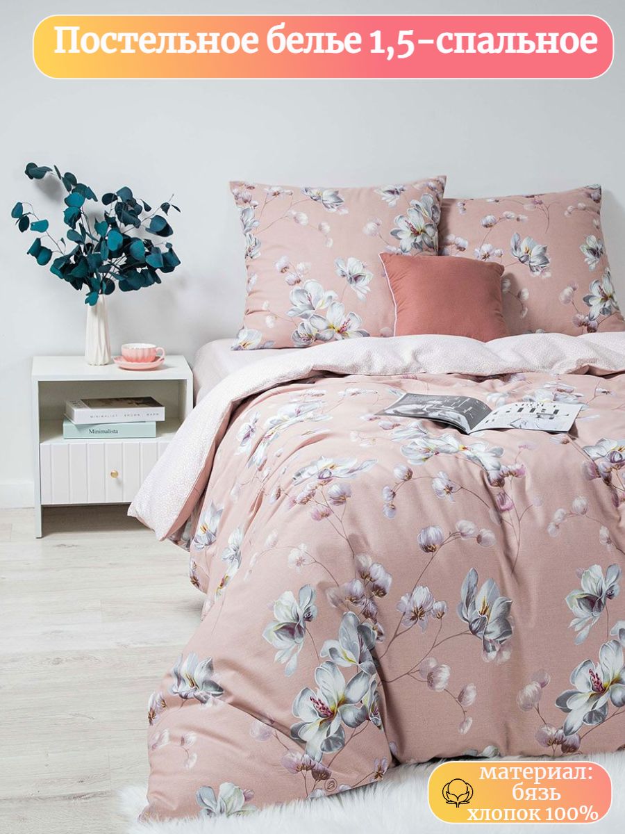 120 / розовый / Модистка / Цветы / 1250 / Ивановский текстиль / Полуторный / 143x215 / 1 пододеяльник, 1 простыня, 2 наволочки / 150x220 / Средняя / Унисекс / 4