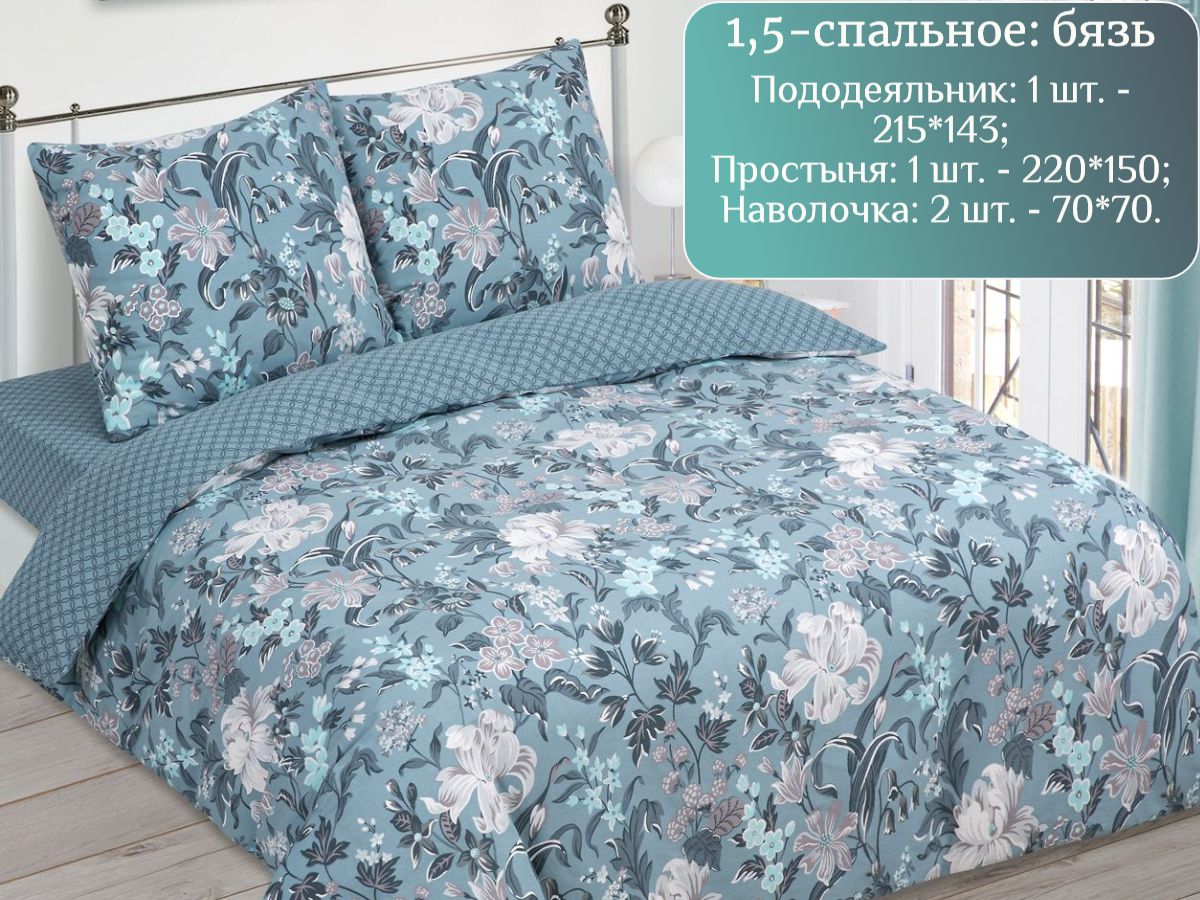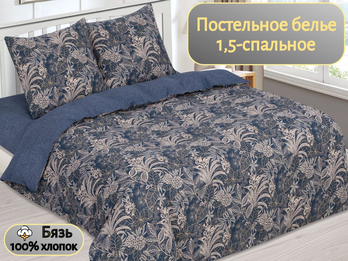 120 / темно-синий / Лоренце / Растения / 1250 / ивановский текстиль / Полуторный / 143x215 / 1 одеяло, 1 простыня, 2 наволочки / 150x220 / Средняя / Унисекс / 4