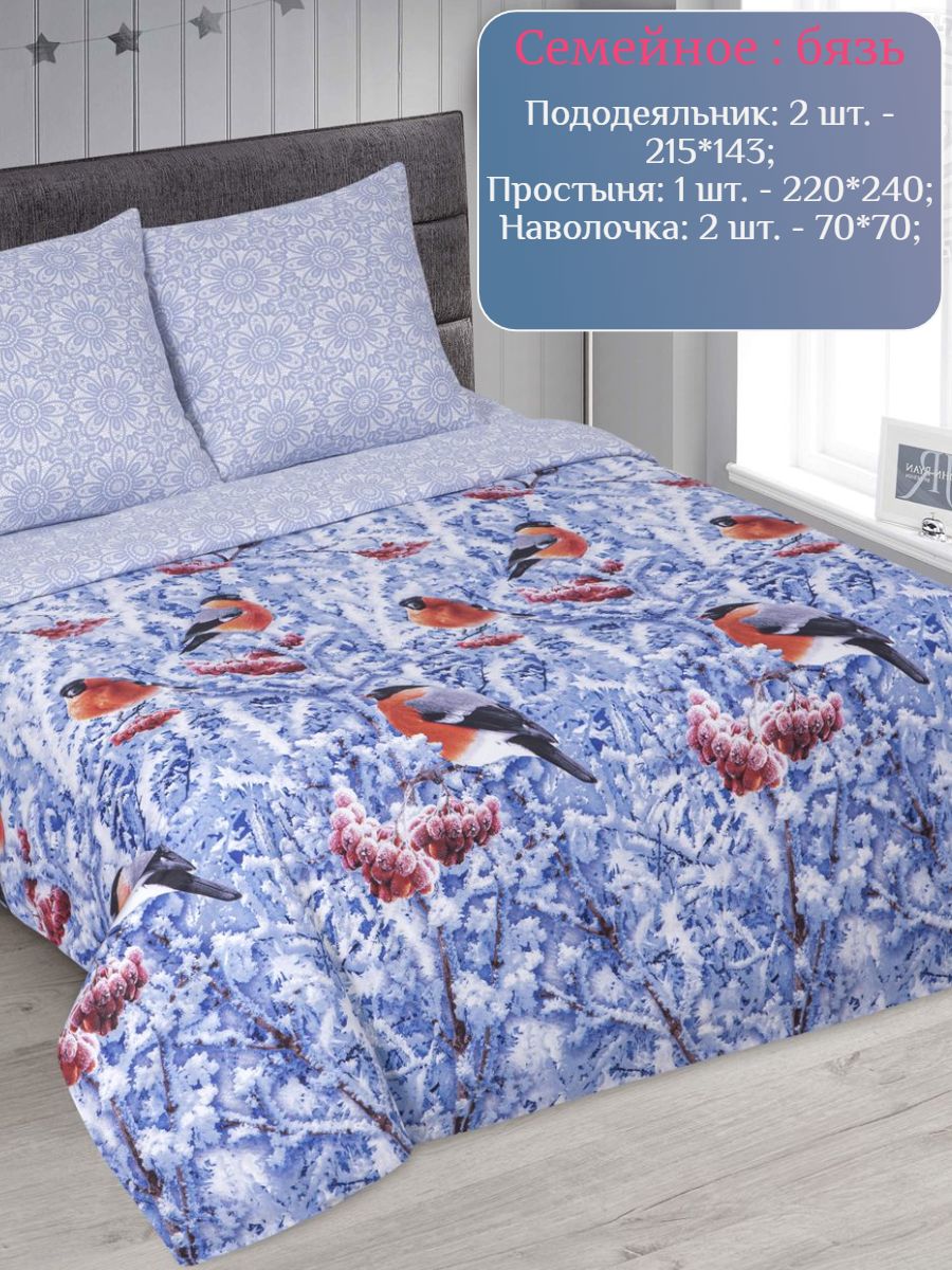 120 / синий / Снегири / Новогодний / 1850 / постельное белье семейное; постельное белье бязь; постельное белье семейное бязь; комплект постельного белья семейный; семейный комплект постельного белья; постельное белье семейный комплект; постельное белье с цветами / Семейный / 143x215 / 2 пододеяльника, 1 простыня, 2 наволочки / 220x240 / Средняя / - / 5