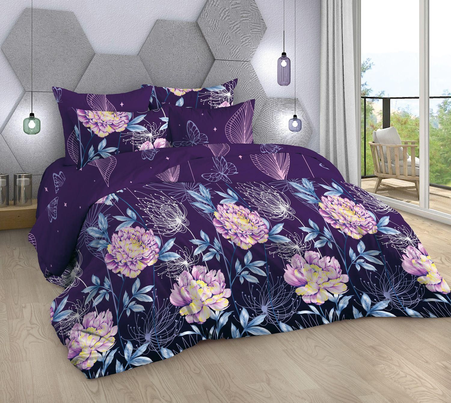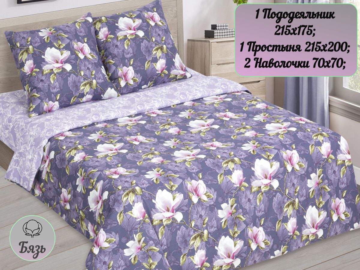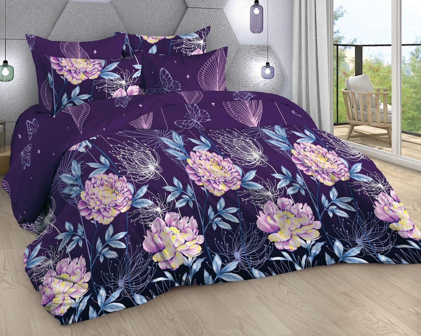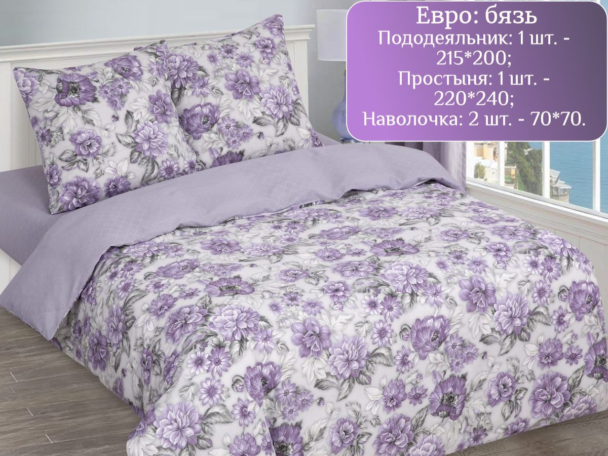 110 / фиолетовый / Магия / Цветы / 1650 / ивановский текстиль / Евро / 200x218 / 1 пододеяльник, 1 простыня, 2 наволочки / 217x240 / Средняя / Унисекс / 4