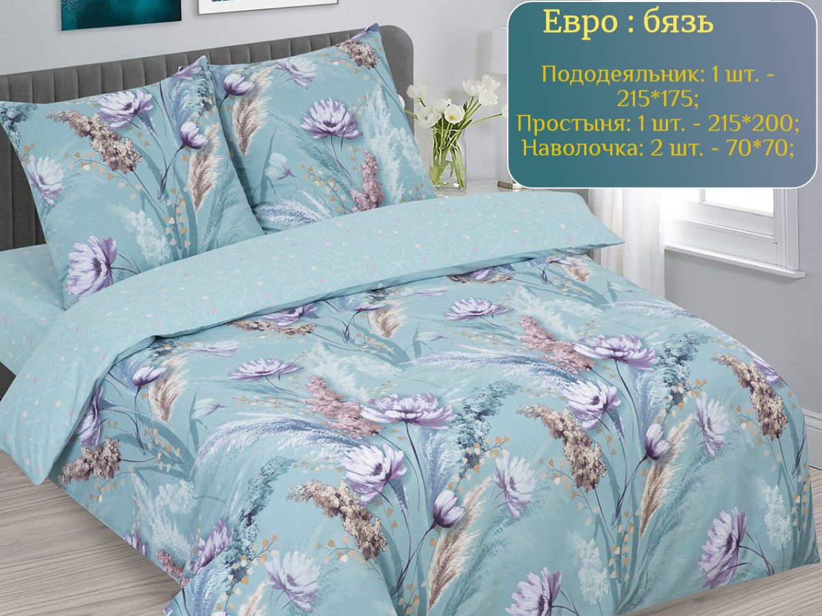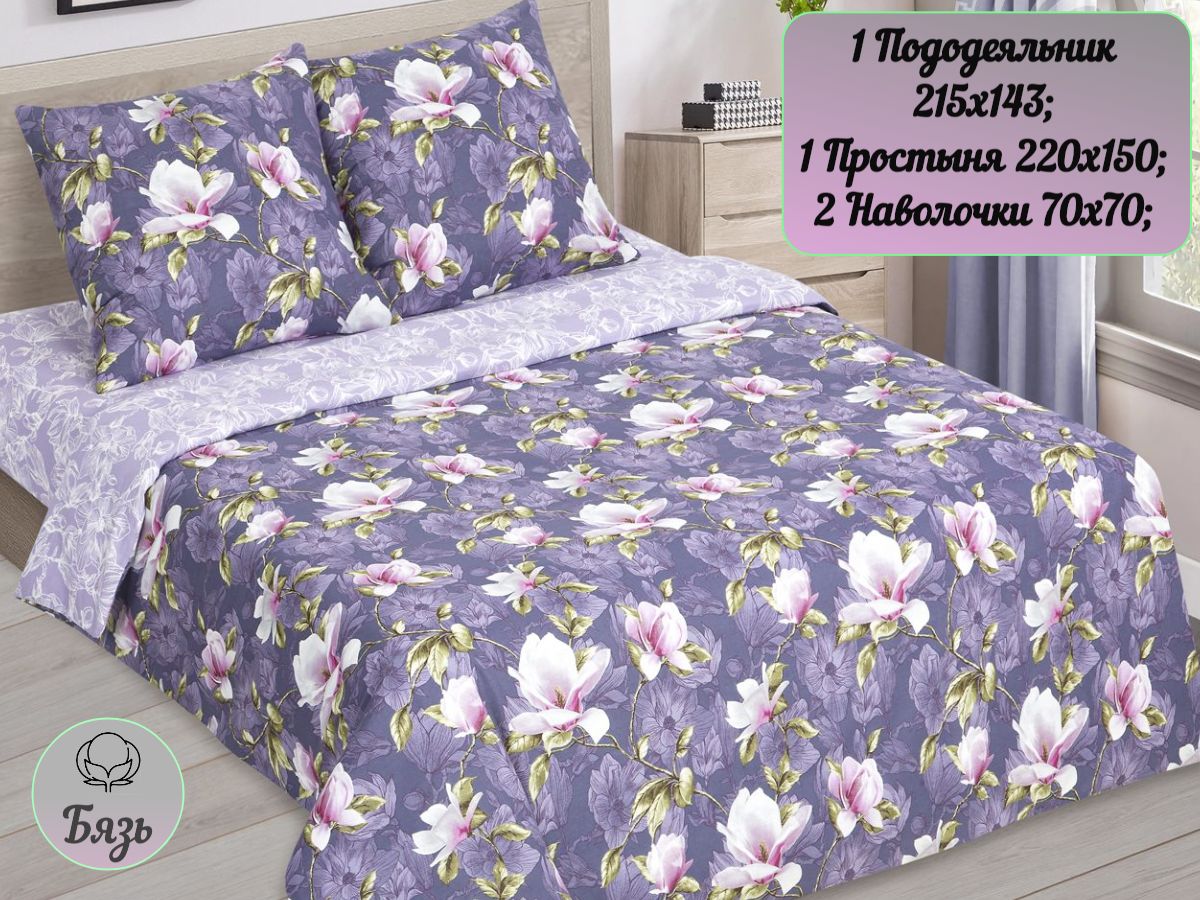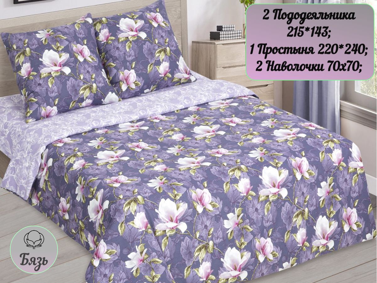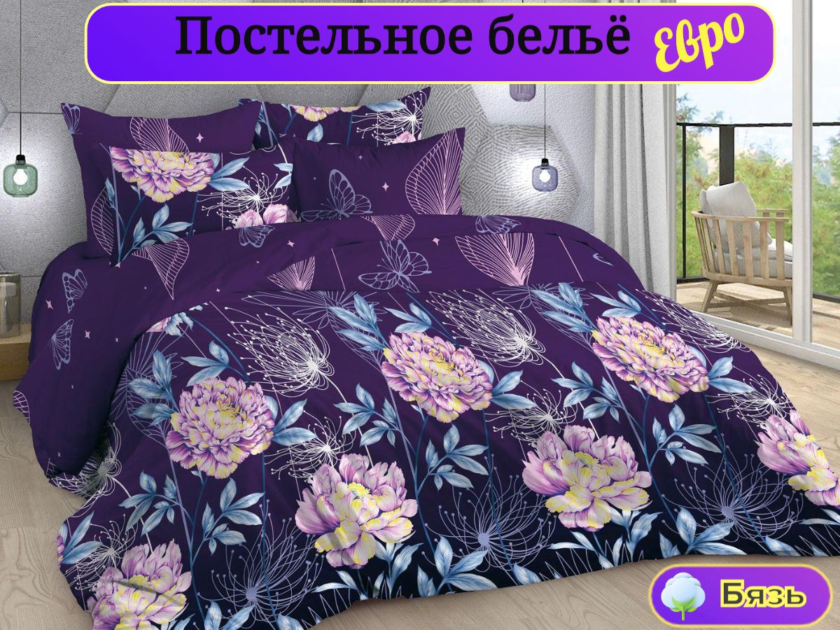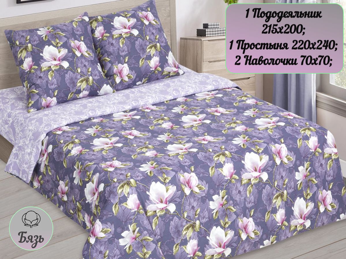 110 / фиолетовый / Магия / Цветы / 1650 / ивановский текстиль / Евро / 200x218 / 1 пододеяльник, 1 простыня, 2 наволочки / 217x240 / Средняя / Унисекс / 4