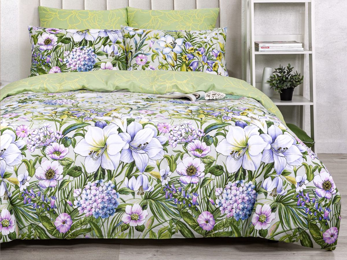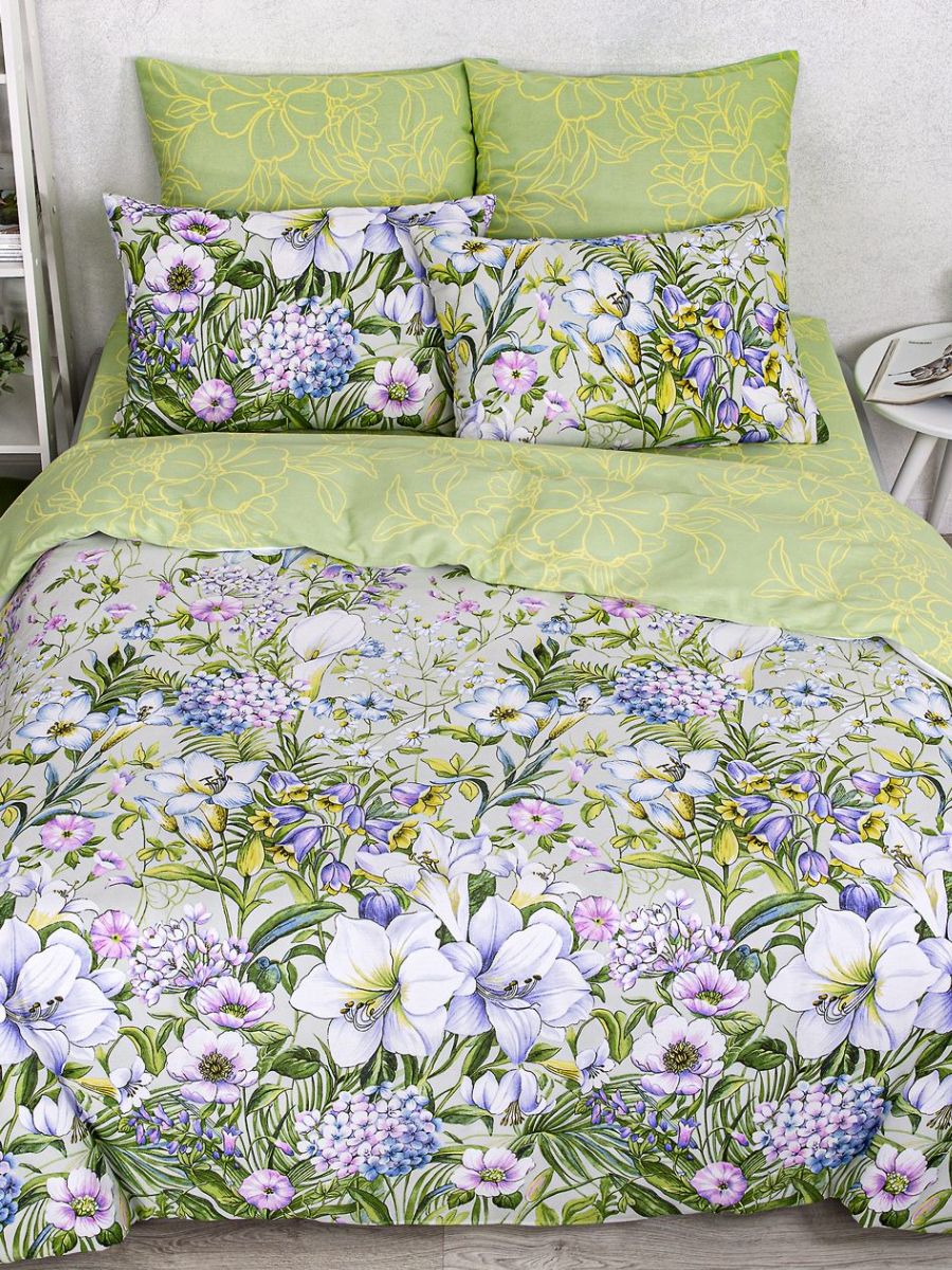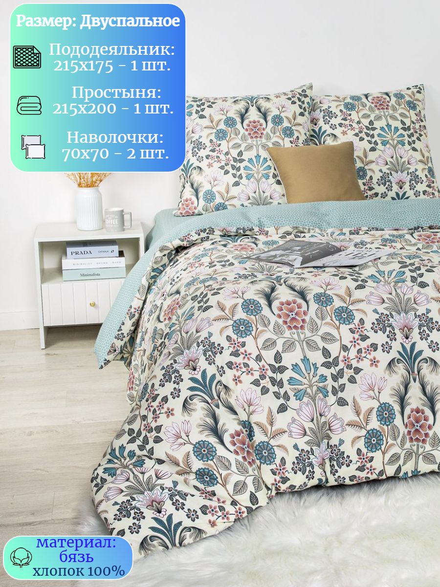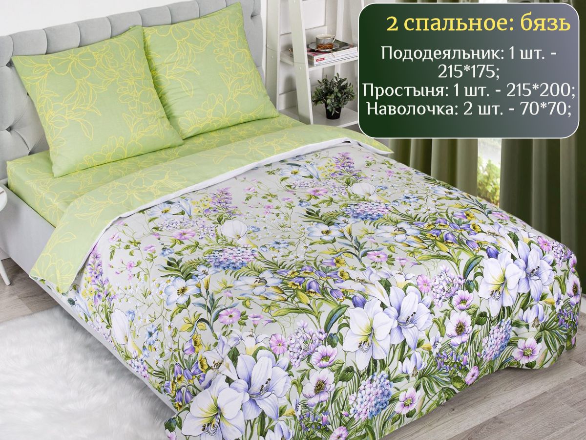 120 / зеленый / Женева / Растения / 1650 / ивановский текстиль / Двуспальный / 175x215 / 1 пододеяльник, 1 простыня, 2 наволочки / 200x215 / Высокая / Унисекс / 4
