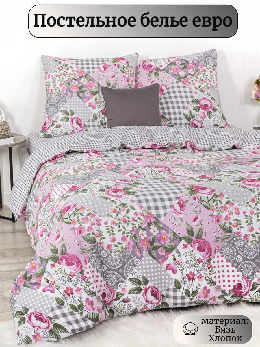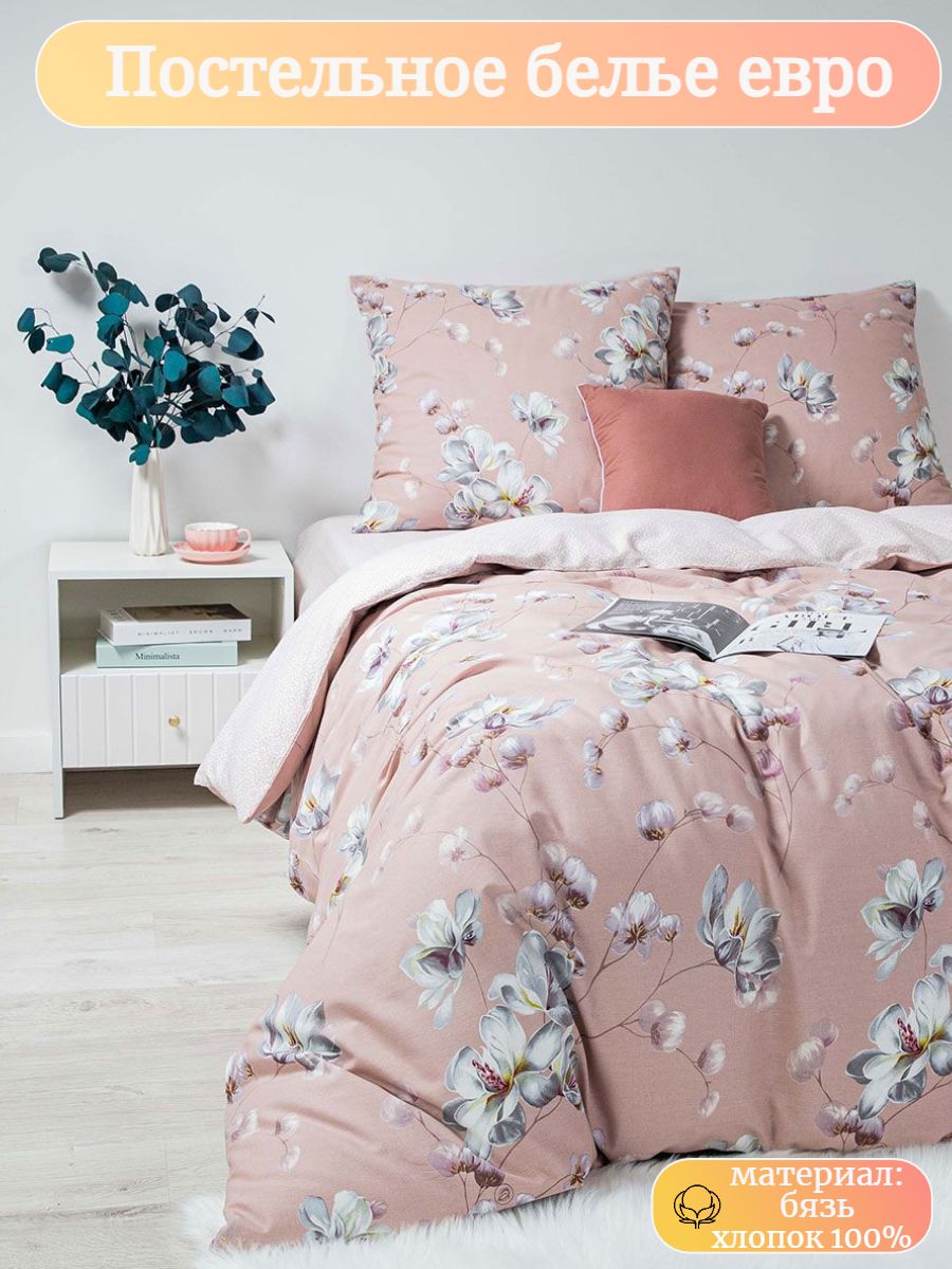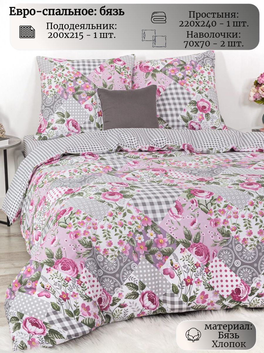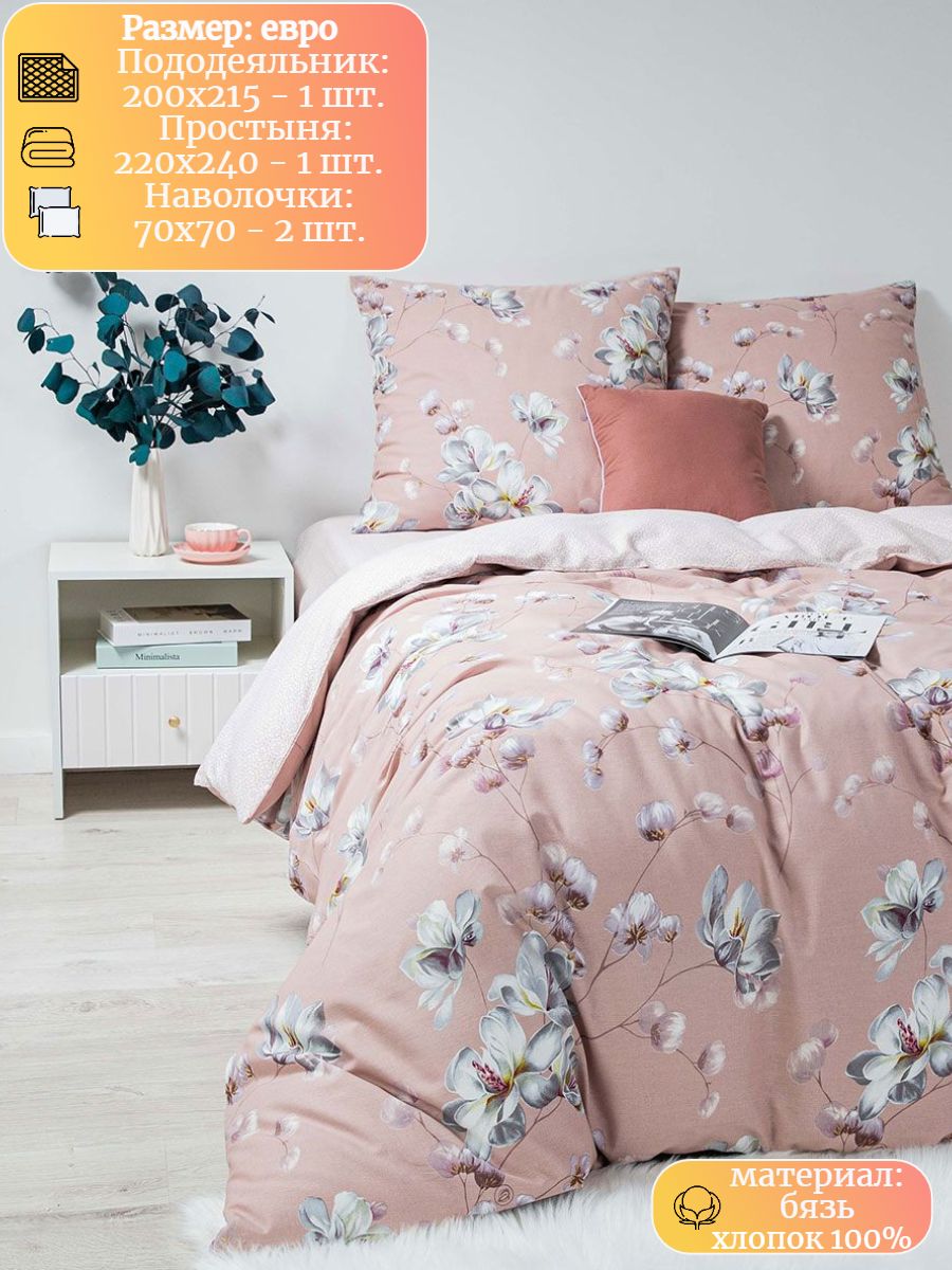 120 / розовый / Модистка / Цветы / 1700 / Ивановский текстиль / Евро / 200x215 / 1 пододеяльник, 1 простыня, 2 наволочки / 220x240 / Средняя / Унисекс / 4