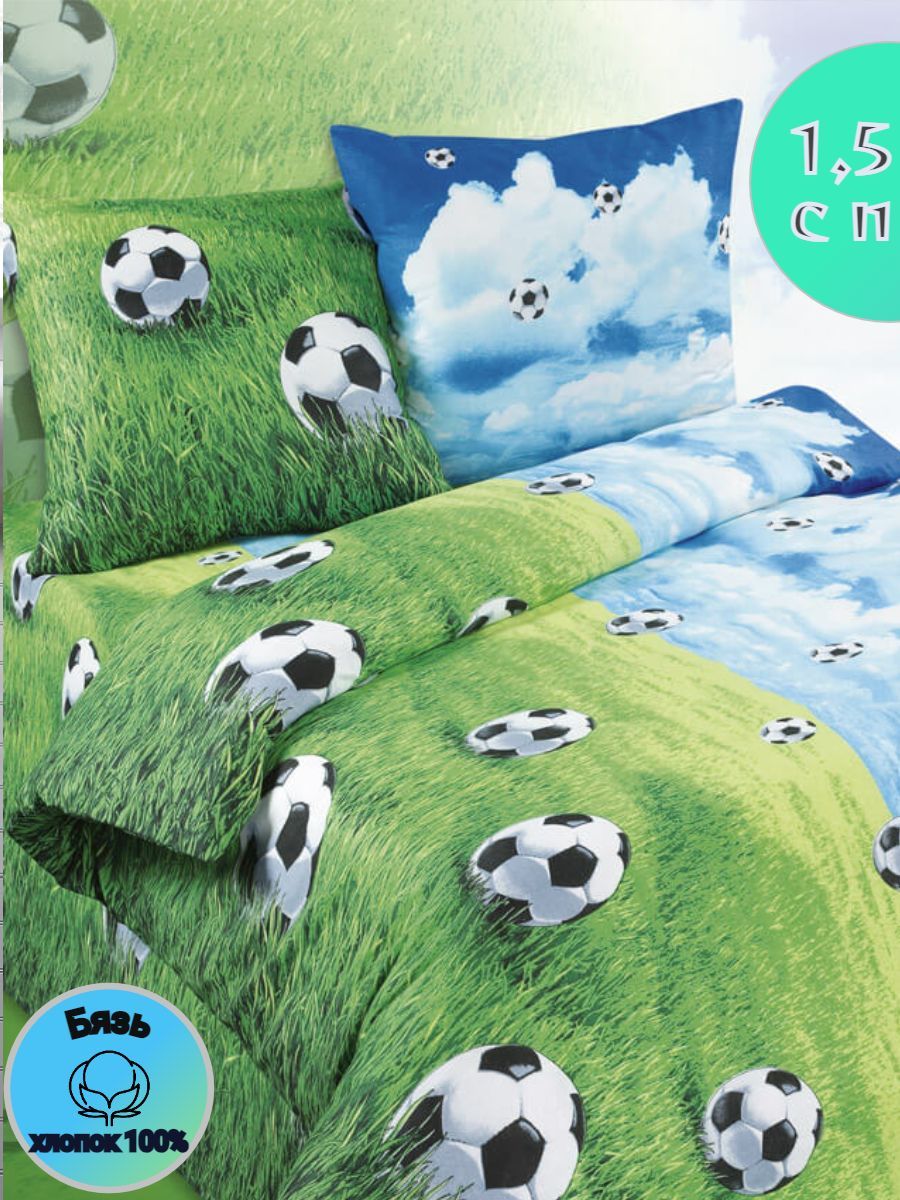 125 / зеленый / Футбол / Футбольное поле / 1100 / ивановский текстиль / Полуторный / 147x215 / 1 пододеяльник, 1 простыня, 1 наволочка / 147x215 / Средняя / Унисекс / 3