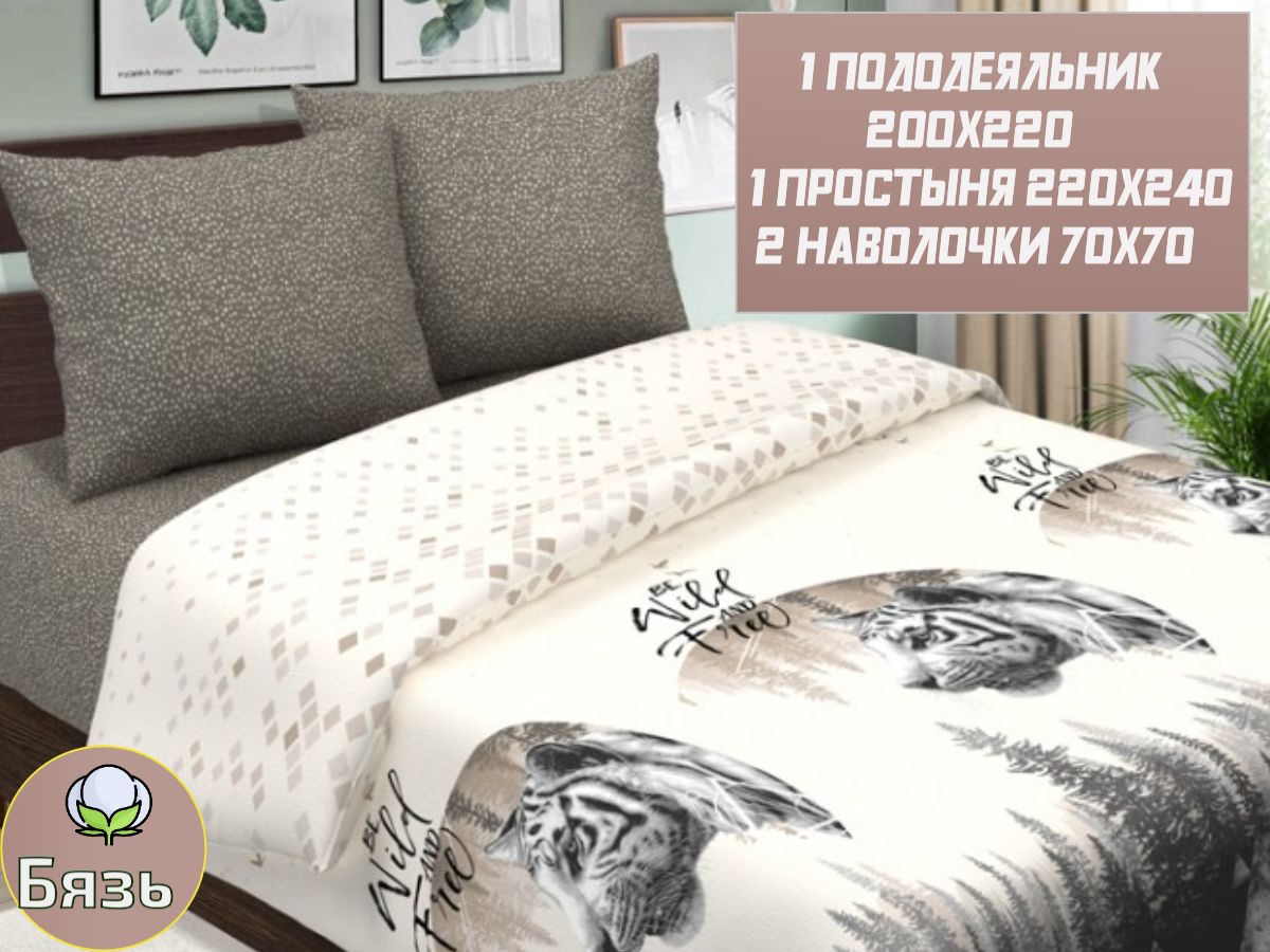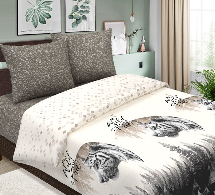 120 / фиолетовый / Хантер / Тигр / 1650 / ивановский текстиль / Евро / 200x220 / 1 пододеяльник, 1 простыня, 2 наволочки / 217x240 / Средняя / Унисекс / 4