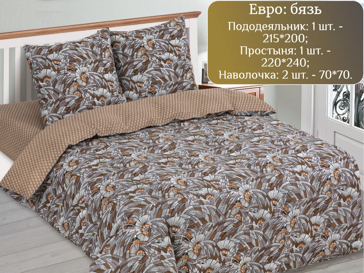 120 / коричневый / Эффект / Геометрический / 1700 / Ивановский текстиль / Евро / 200x215 / 1 пододеяльник, 1 простыня, 2 наволочки / 220x240 / Средняя / Унисекс / 4