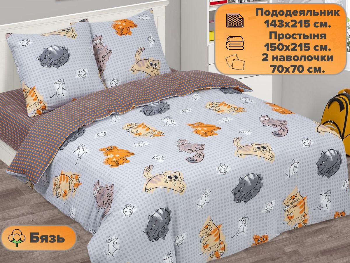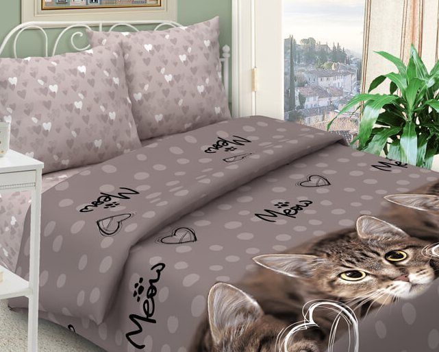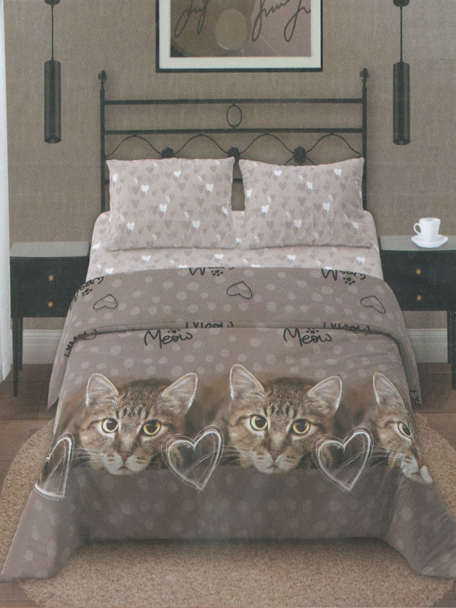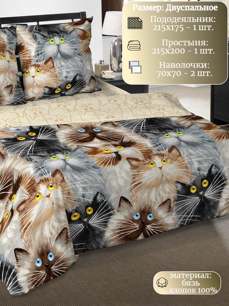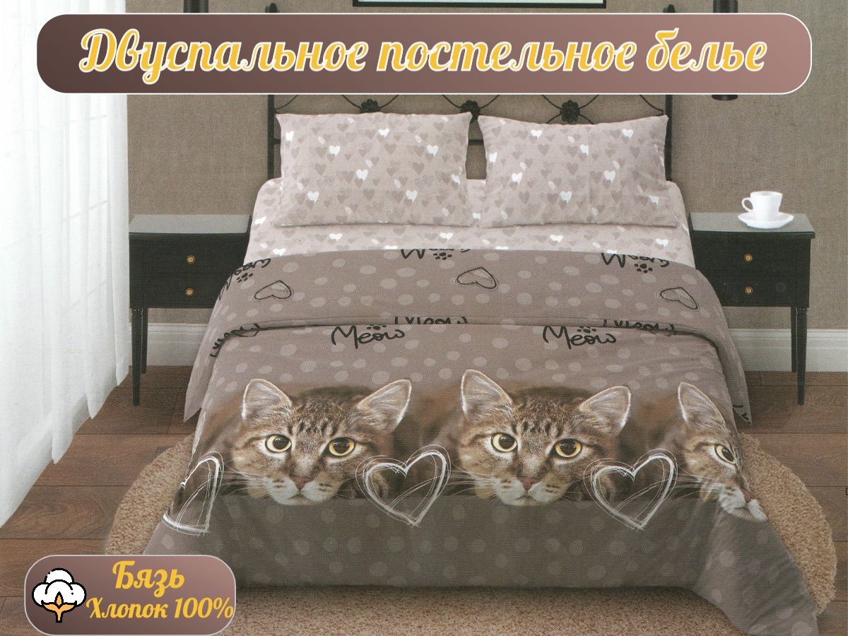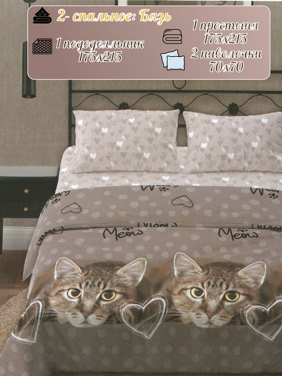 120 / коричневый / Кот / Кот, котёнок / 650 / ивановский текстиль / Двуспальный / 175x215 / 1 пододеяльник, 1 простыня, 2 наволочки / 175x215 / Средняя / Унисекс / 4