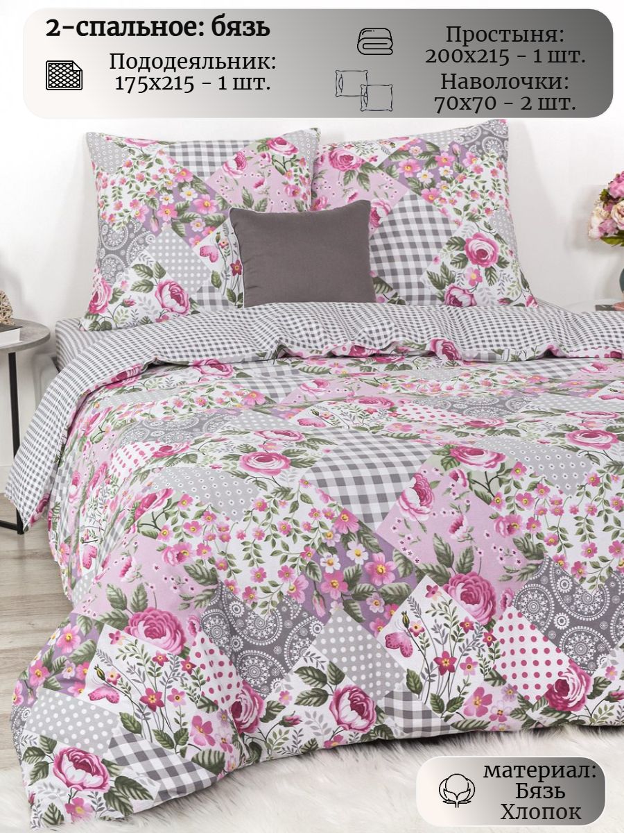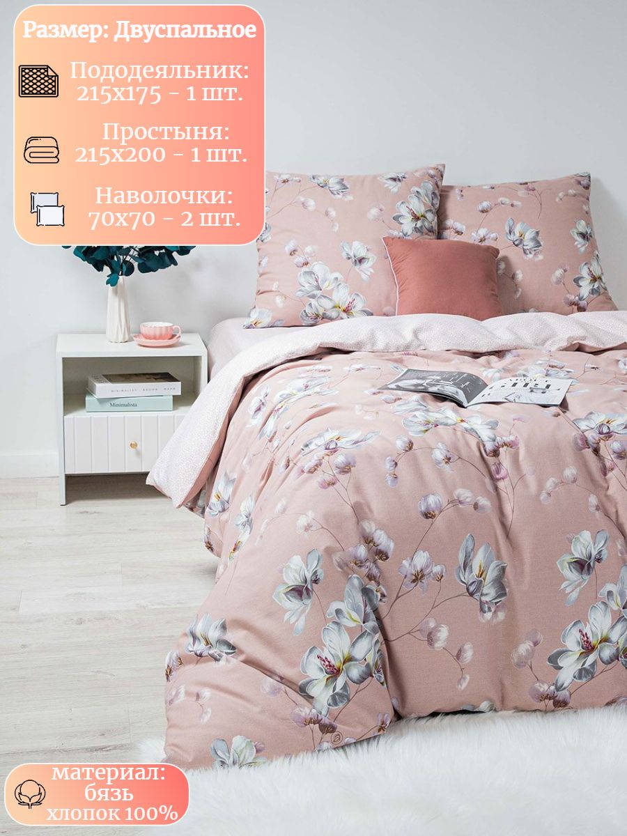 120 / розовый / Модистка / Цветы / 1650 / Ивановский текстиль / Двуспальный / 175x215 / 1 пододеяльник, 1 простыня, 2 наволочки / 200x215 / Высокая / Унисекс / 4