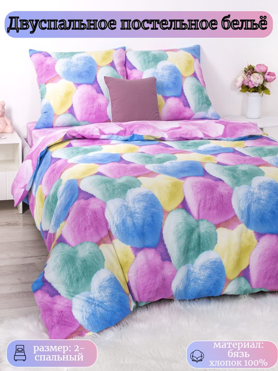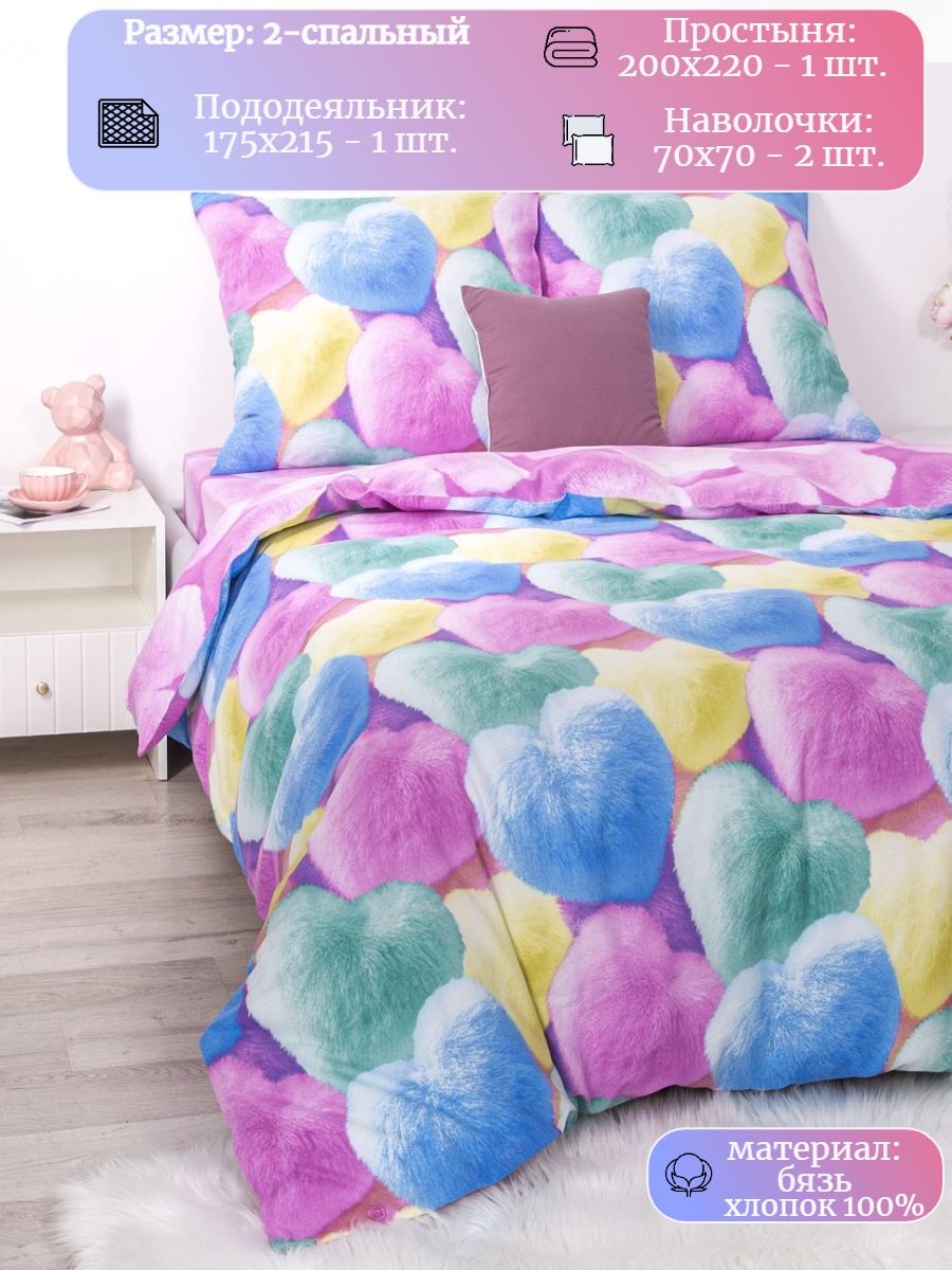 120 / разноцветный / Шери / Сердце / 1650 / ивановский текстиль / Двуспальный / 175x215 / 1 пододеяльник, 1 простыня, 2 наволочки / 200x215 / Высокая / Унисекс / 4