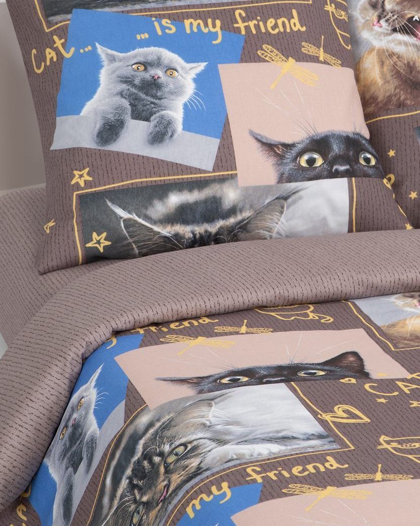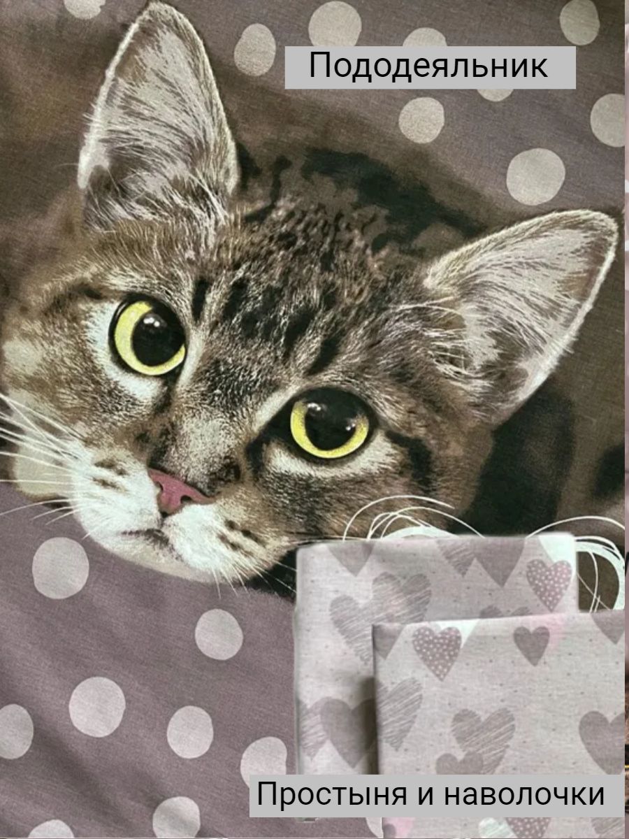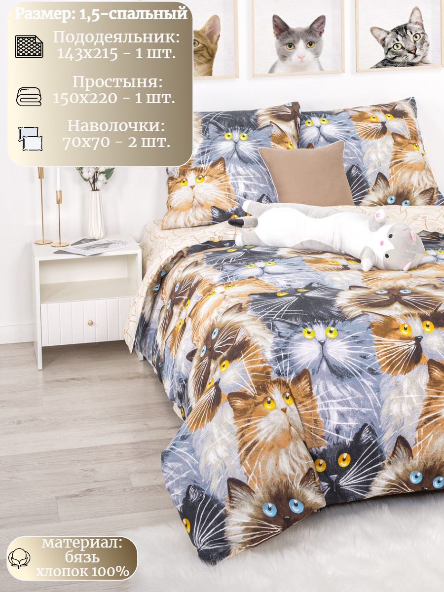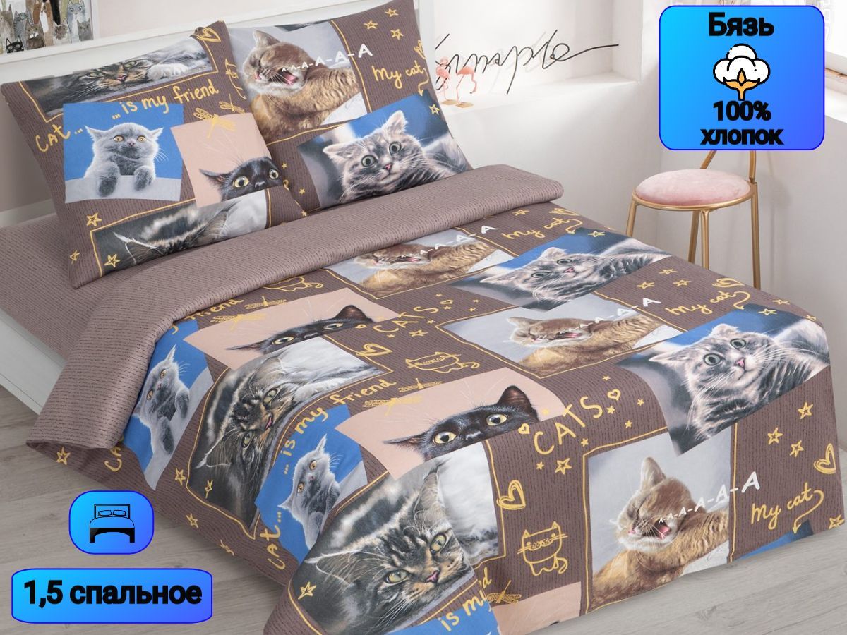 120 / коричневый / Замурчательные коты / Кот, котёнок / 1100 / ивановский текстиль / Полуторный / 143x215 / 1 пододеяльник, 1 простыня, 2 наволочки / 150x214 / Высокая / Унисекс / 4