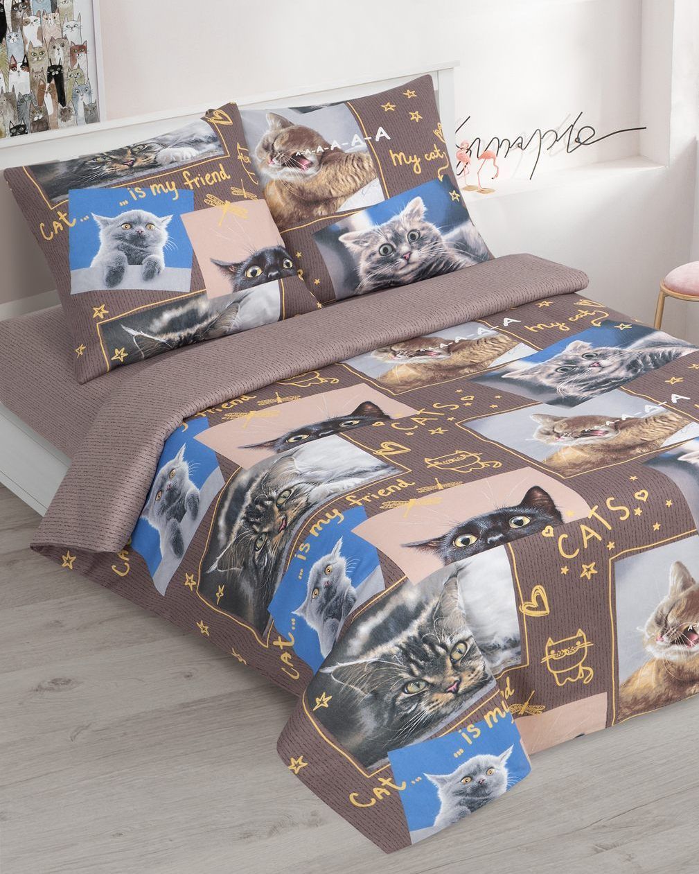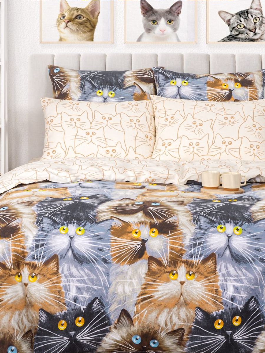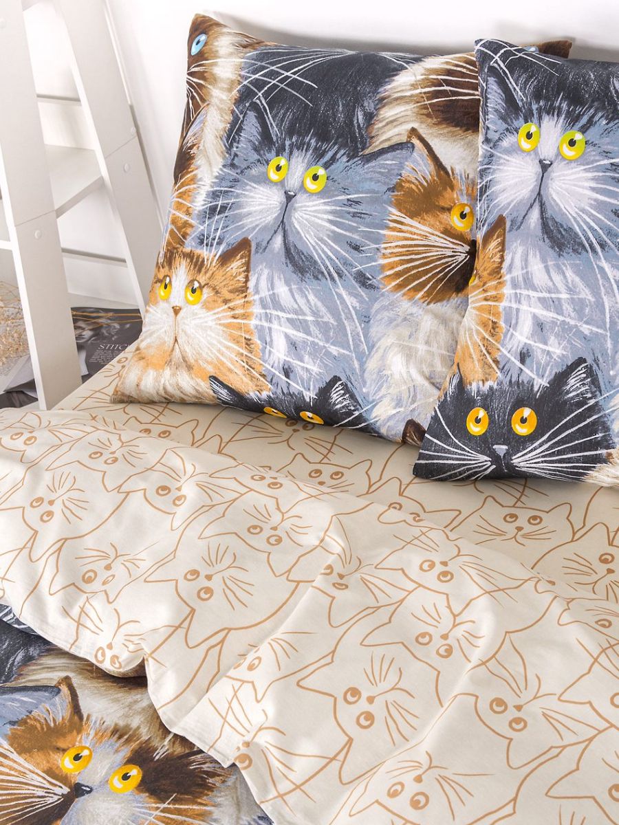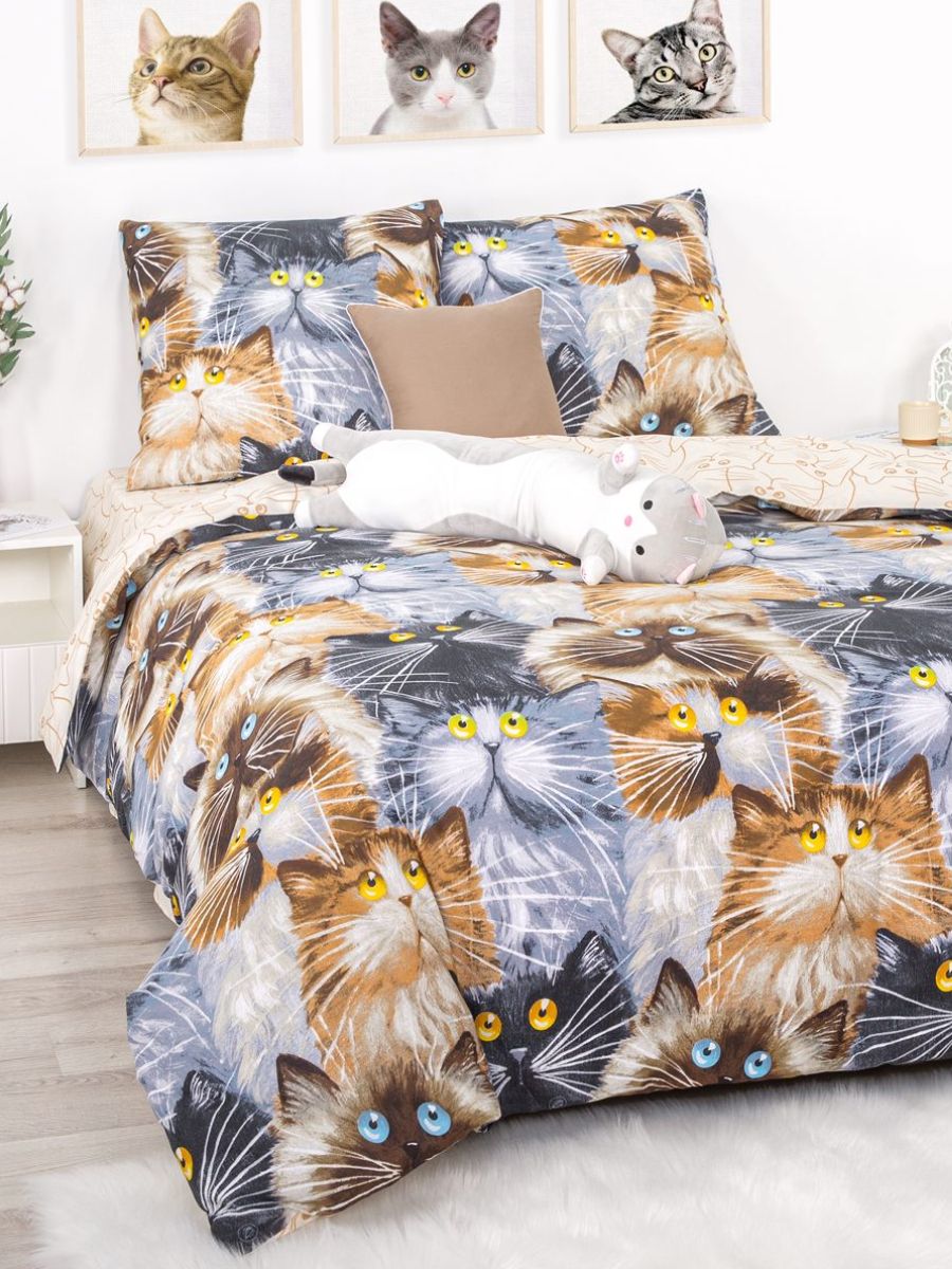 120 / коричневый / Замурчательные коты / Кот, котёнок / 1100 / ивановский текстиль / Полуторный / 143x215 / 1 пододеяльник, 1 простыня, 2 наволочки / 150x214 / Высокая / Унисекс / 4