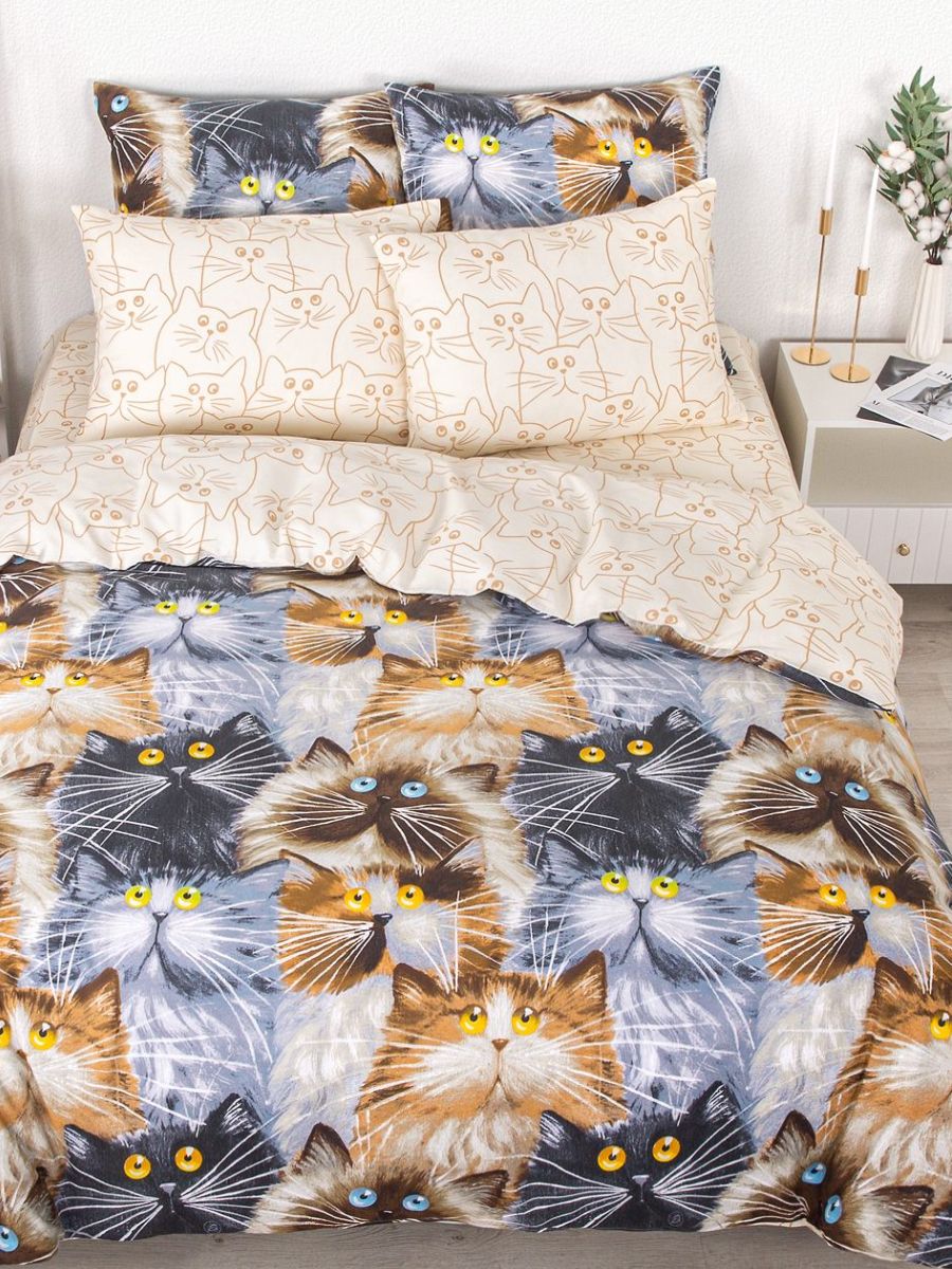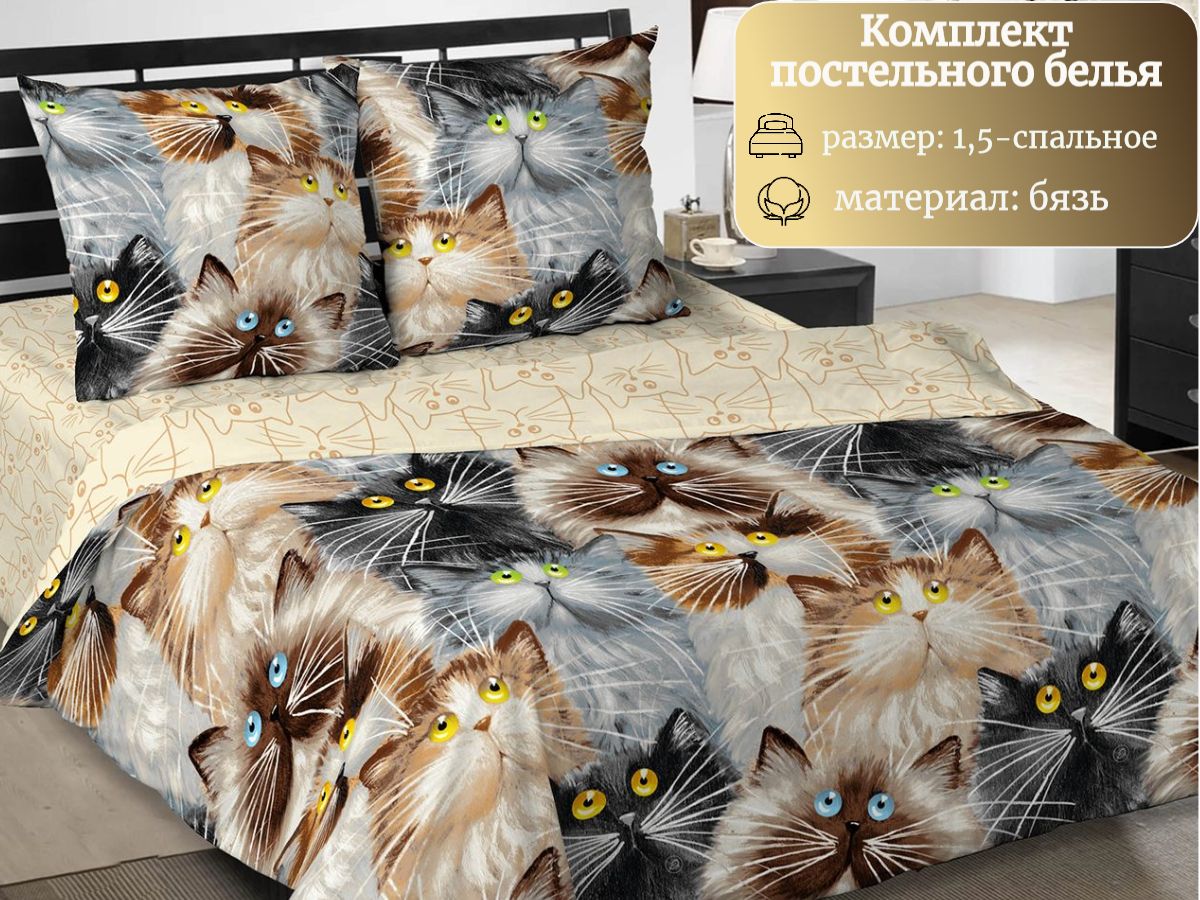 120 / бежевый / Мурр / Кот, котёнок / 1250 / ивановский текстиль / Полуторный / 143x215 / 1 пододеяльник, 1 простыня, 2 наволочки / 150x220 / Средняя / Унисекс / 4