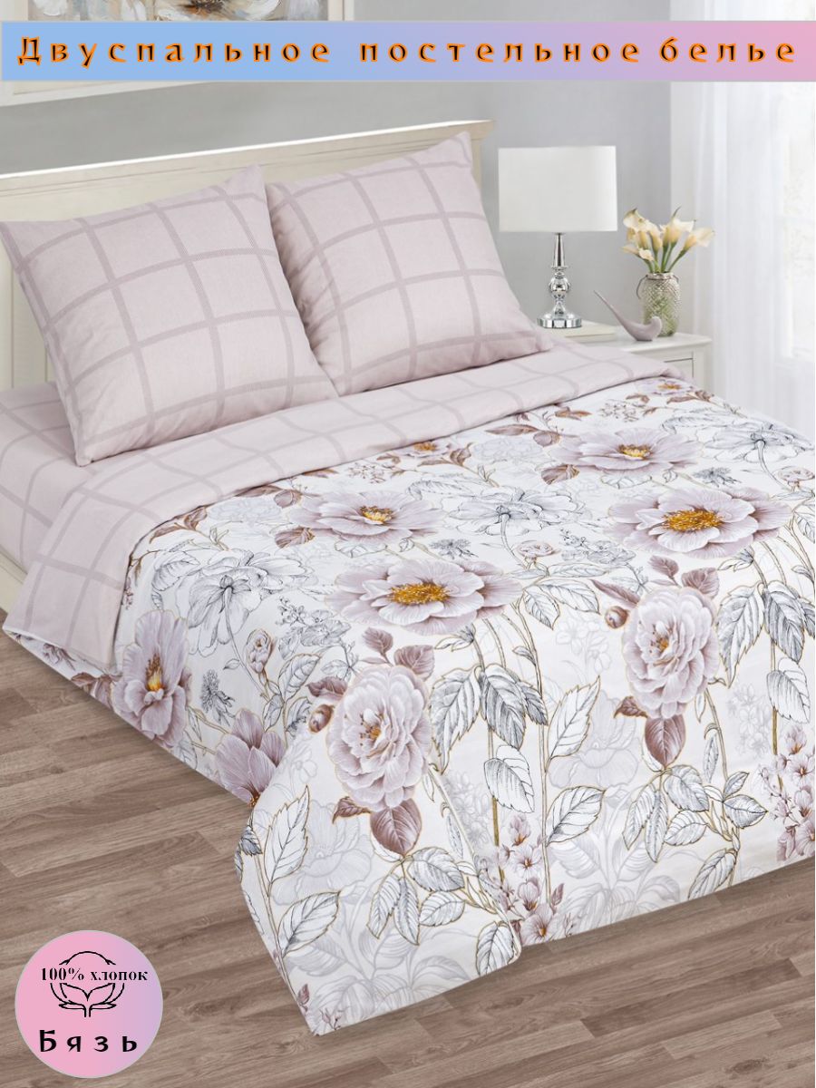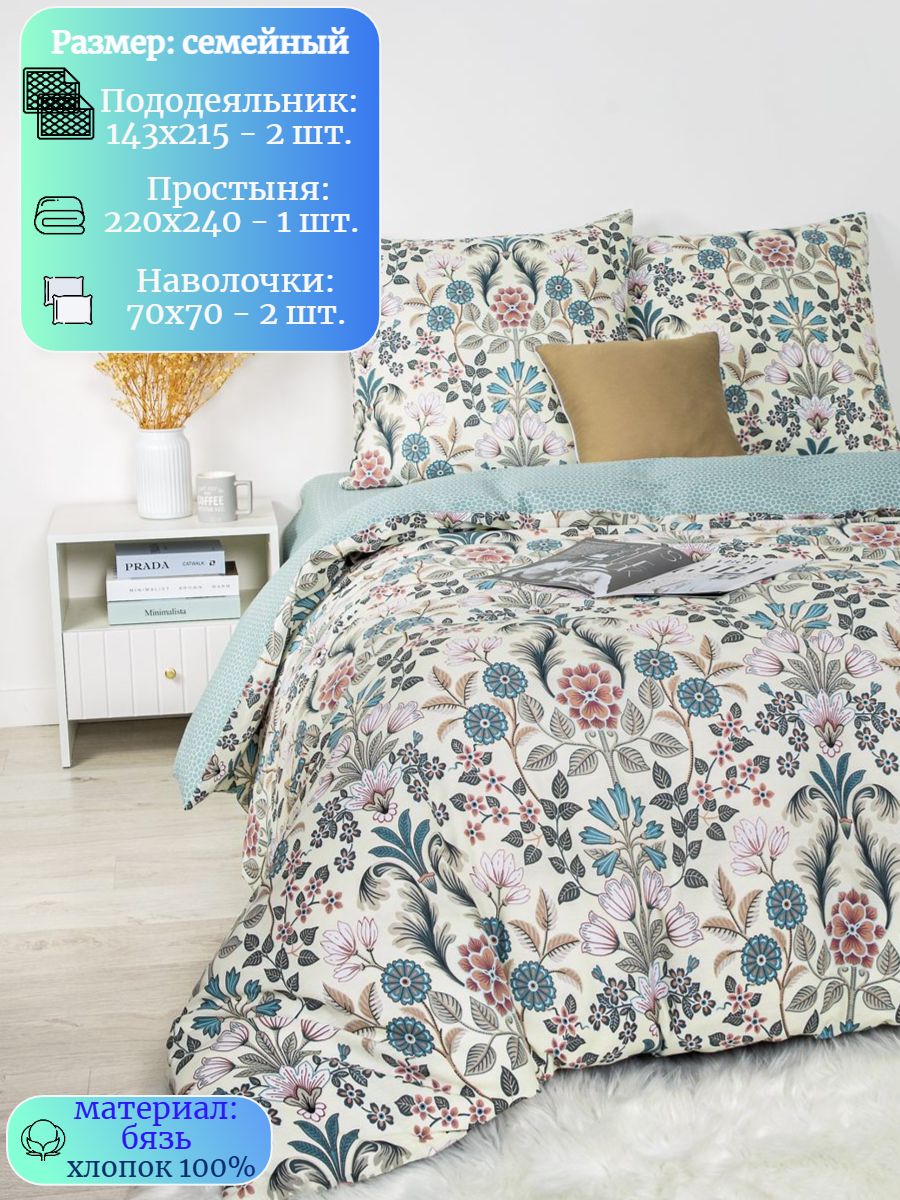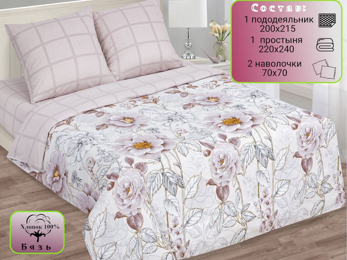 120 / бежевый / Романс / Растения / 1650 / ивановский текстиль / Двуспальный / 175x215 / 1 пододеяльник, 1 простыня, 2 наволочки / 200x215 / Высокая / Унисекс / 4