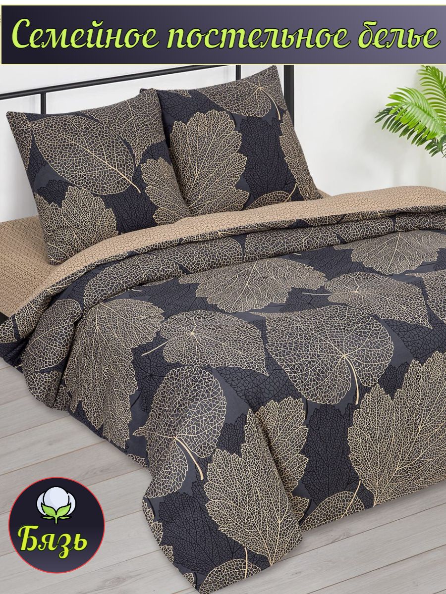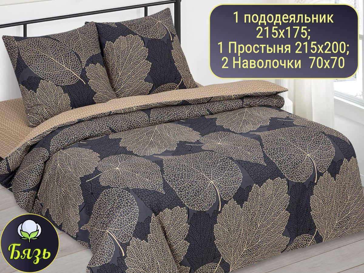 120 / бежевый / Майрон / Листья / 1650 / ивановский текстиль / Двуспальный / 175x215 / 1 пододеяльник, 1 простыня, 2 наволочки / 200x215 / Высокая / Унисекс / 4