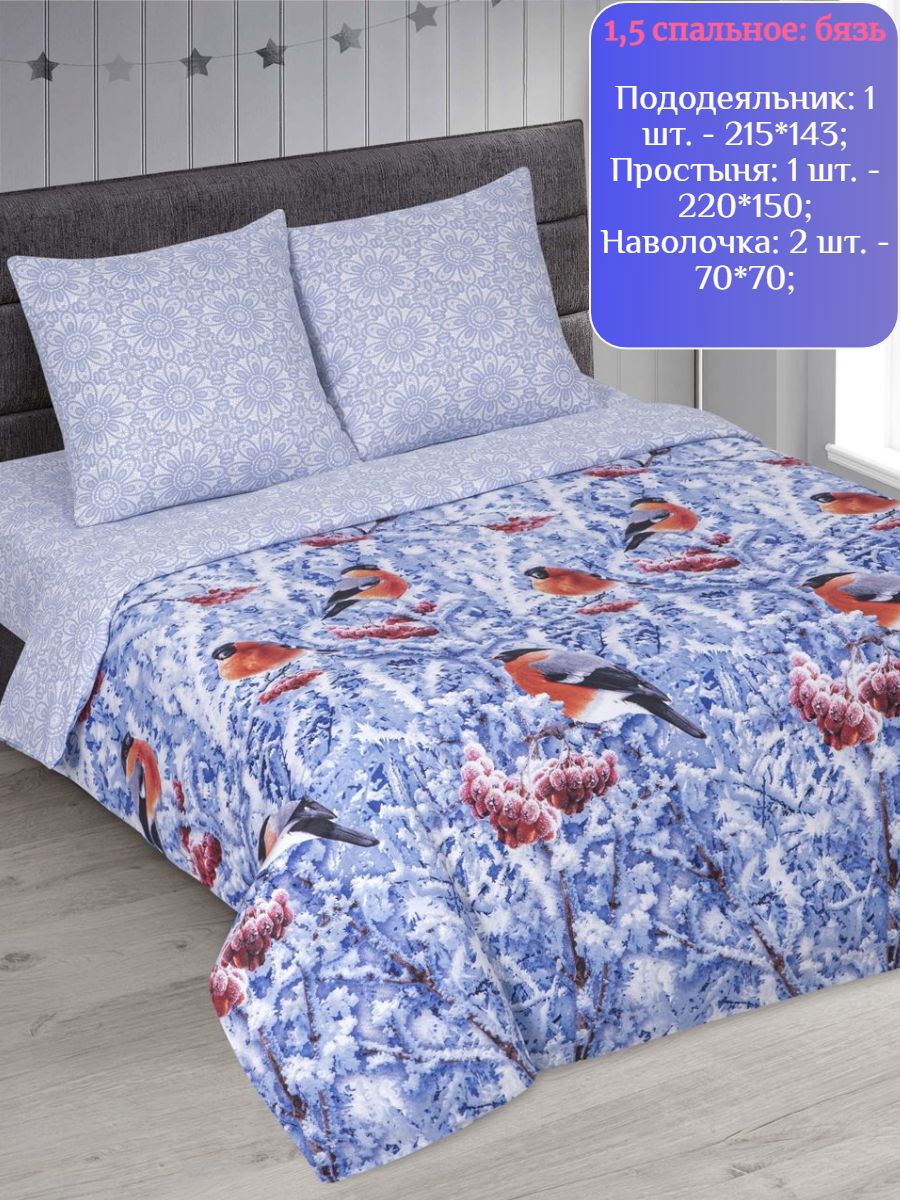 120 / синий / Снегири / Новогодний / 1250 / постельное белье 1 5 спальное; постельное белье; постельное белье 1 5 спальное хлопок; комплект постельного белья 1,5; постельное белье 1 5 спальное бязь; постельное белье бязь; комплект постельного белья 1,5 бязь / Полуторный / 143x215 / 1 пододеяльник, 1 простыня, 2 наволочки / 150x220 / Средняя / - / 4