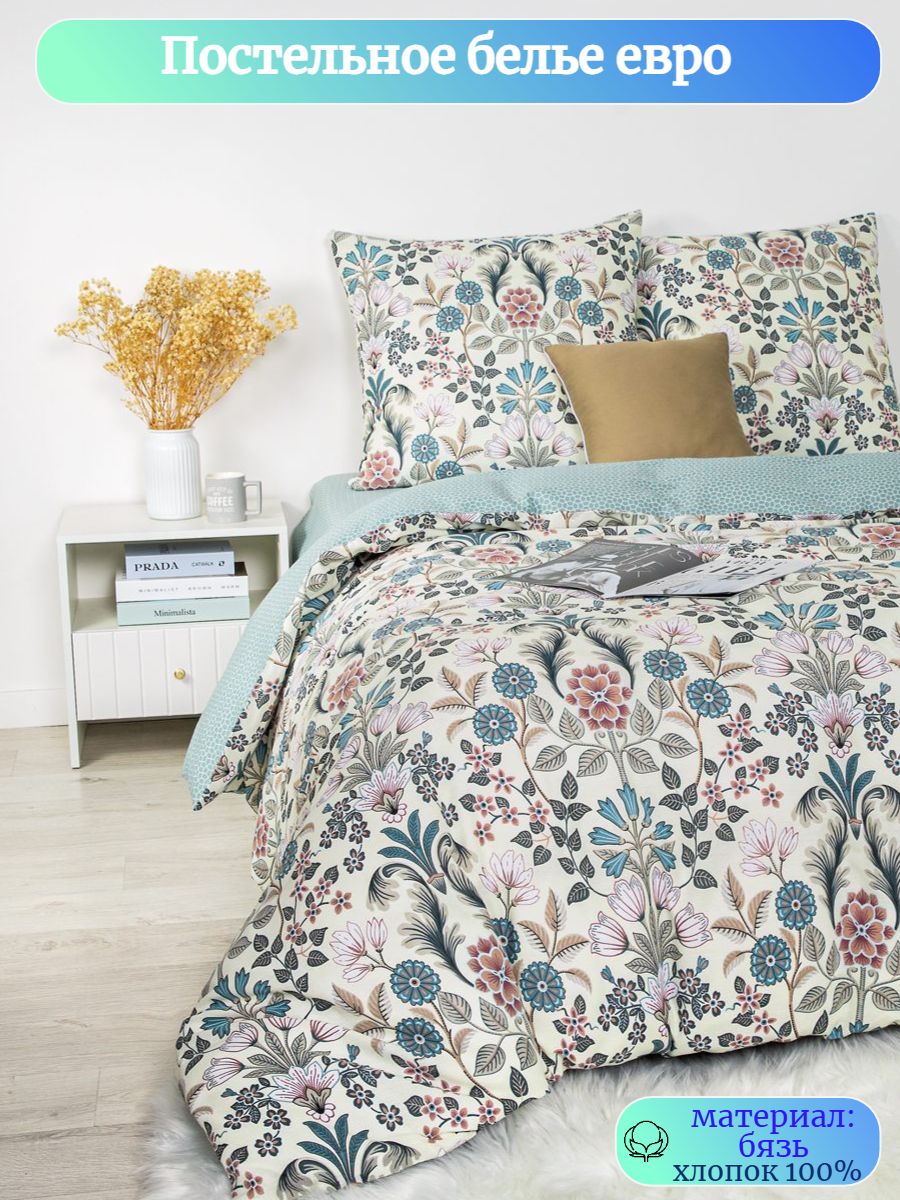 120 / бежевый / Романс / Растения / 1700 / ивановский текстиль / Евро / 200x215 / 1 пододеяльник, 1 простыня, 2 наволочки / 220x240 / Средняя / Унисекс / 4