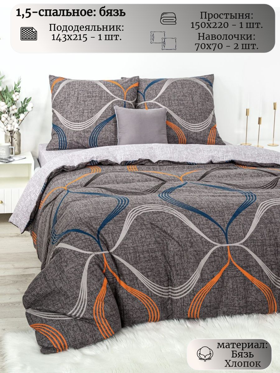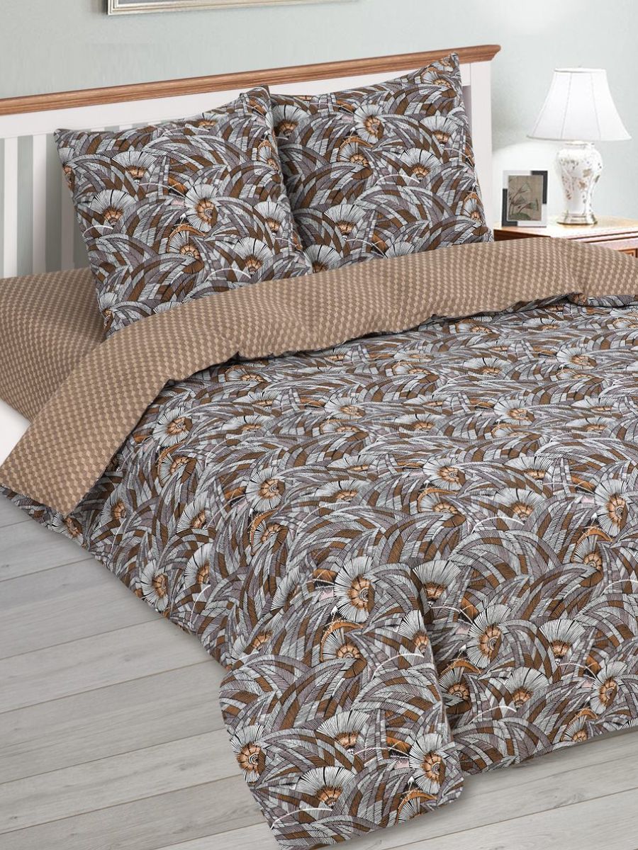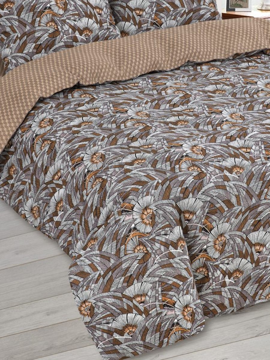 120 / коричневый / Эффект / Геометрический / 1250 / Ивановский текстиль / Полуторный / 143x215 / 1 пододеяльник, 1 простыня, 2 наволочки / 150x220 / Средняя / Унисекс / 4