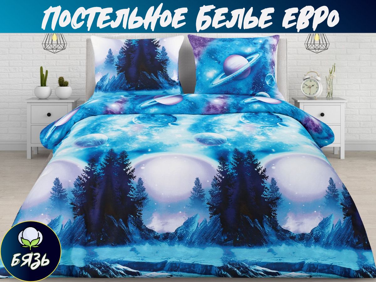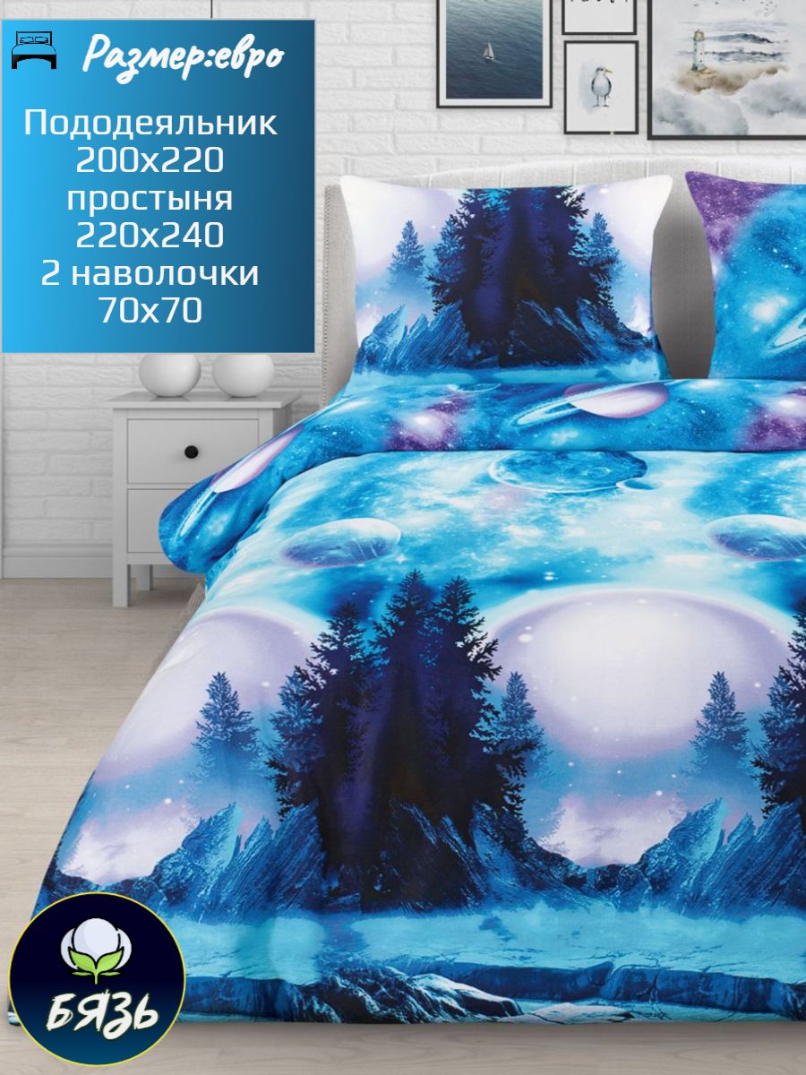 120 / белый / Вселенная / Космос / 1650 / ивановский текстиль / Евро / 220x240 / 1 пододеяльник, 1 простыня, 2 наволочки / 217x240 / Средняя / Унисекс / 4