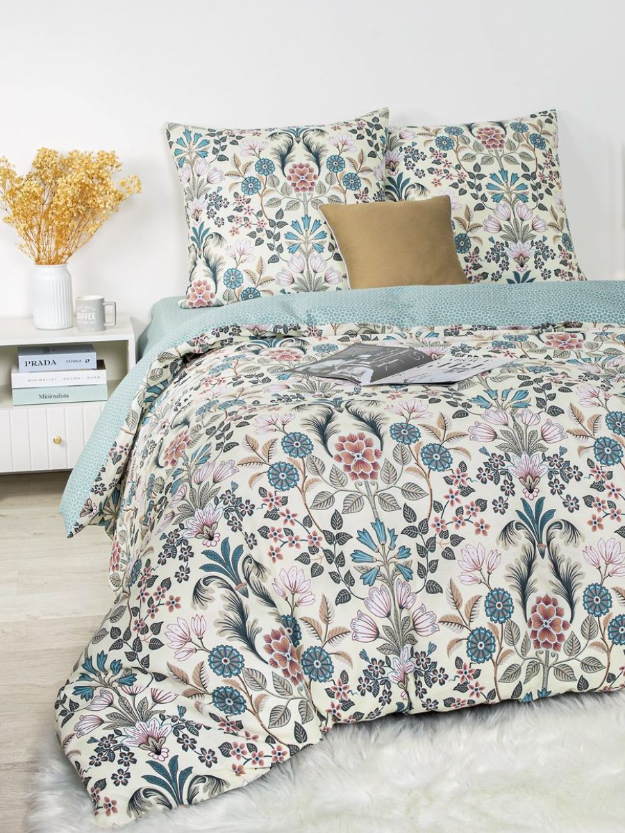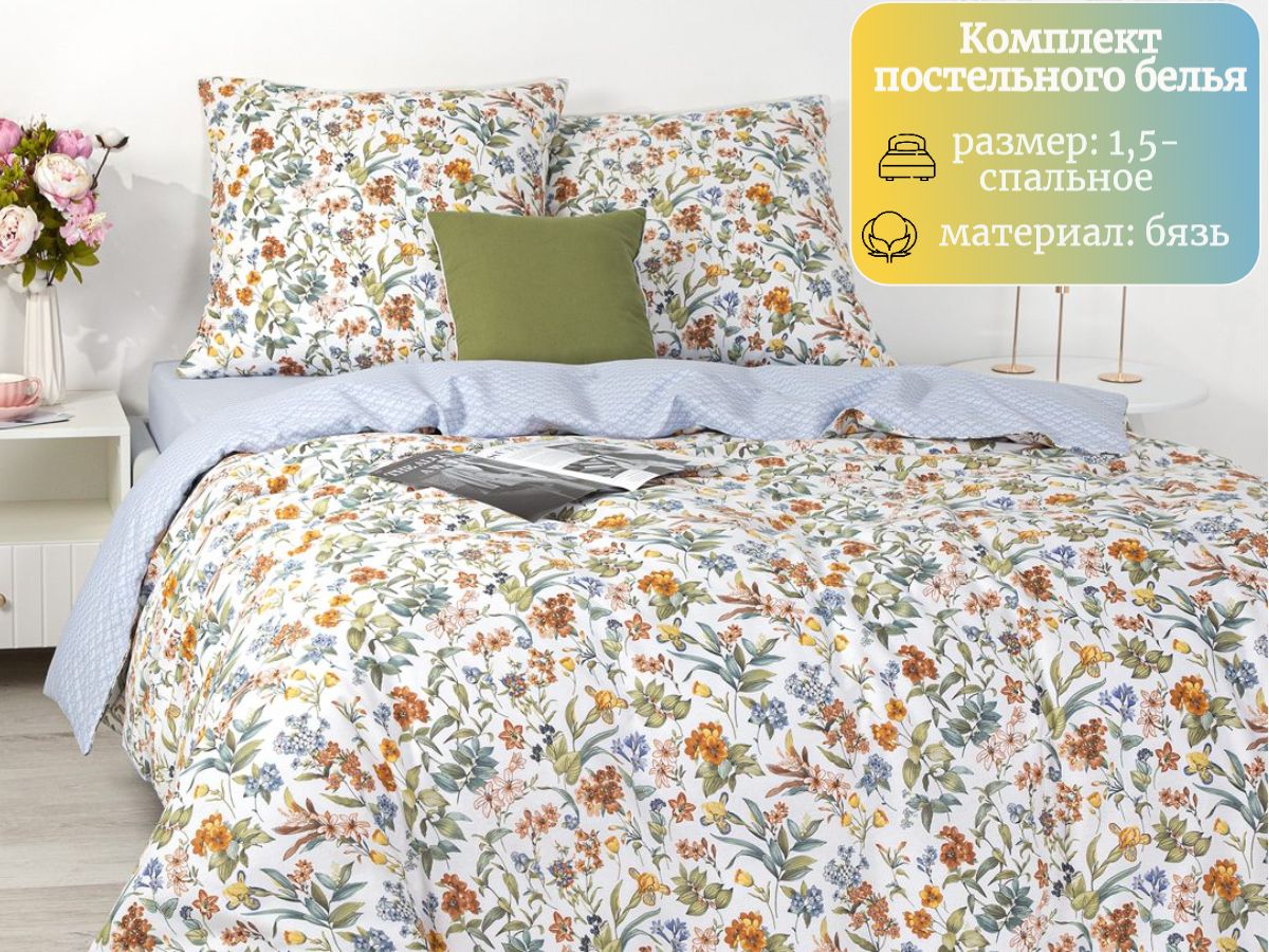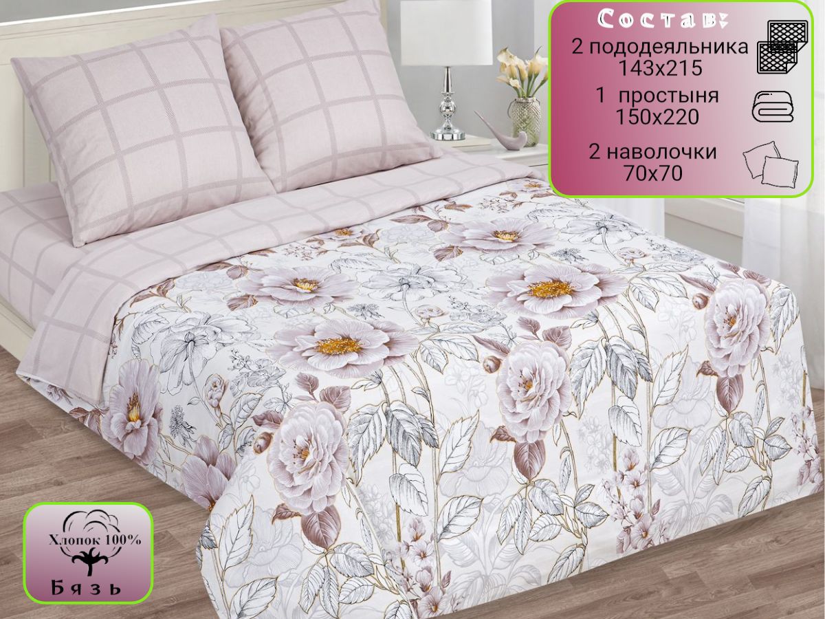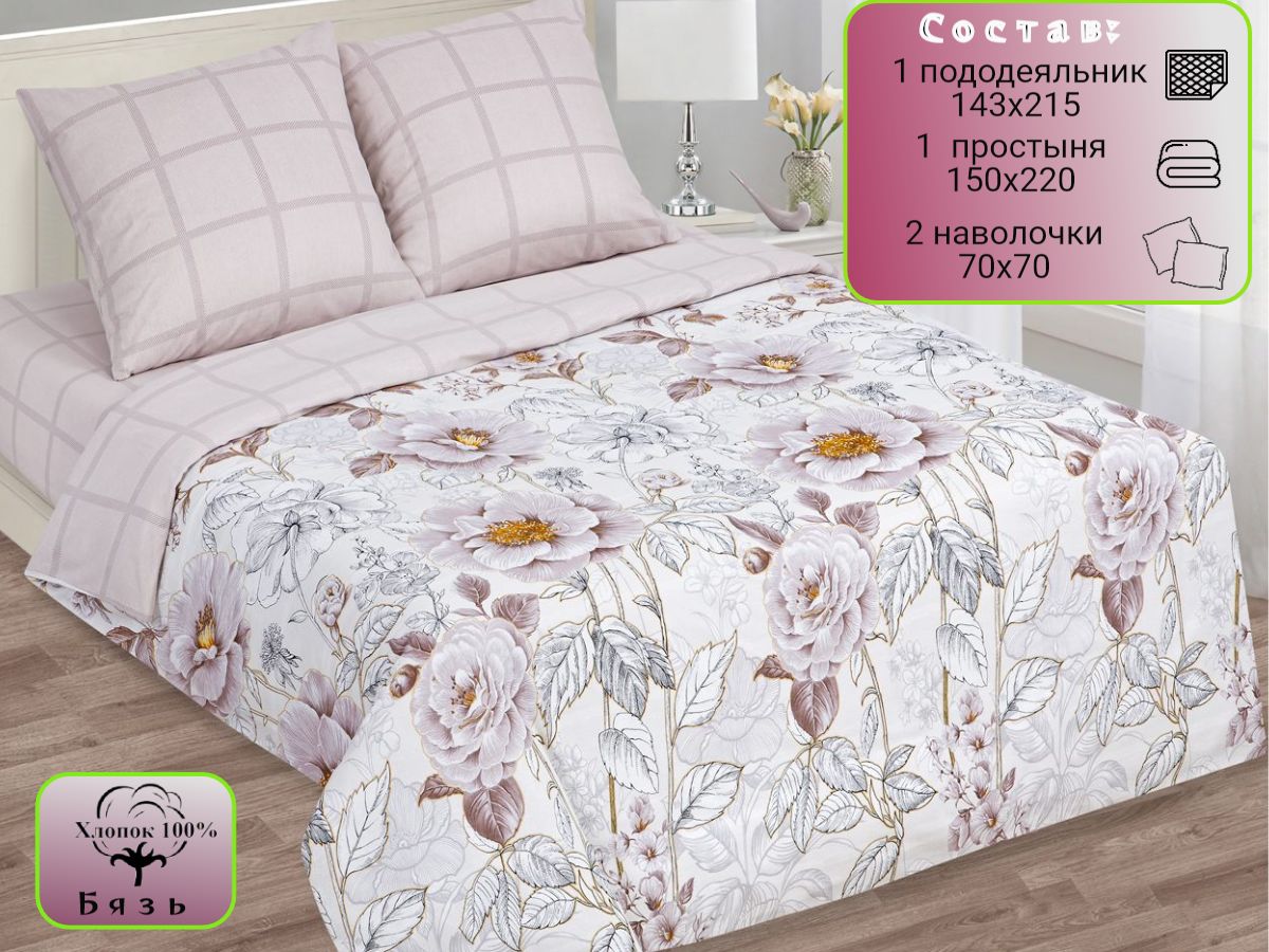 120 / бежевый / Сонет / Цветы / 1250 / ивановский текстиль / Полуторный / 143x215 / 1 одеяло, 1 простыня, 2 наволочки / 150x220 / Средняя / Унисекс / 4