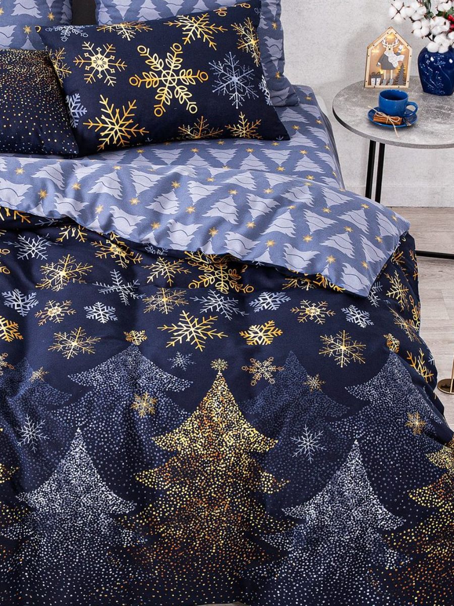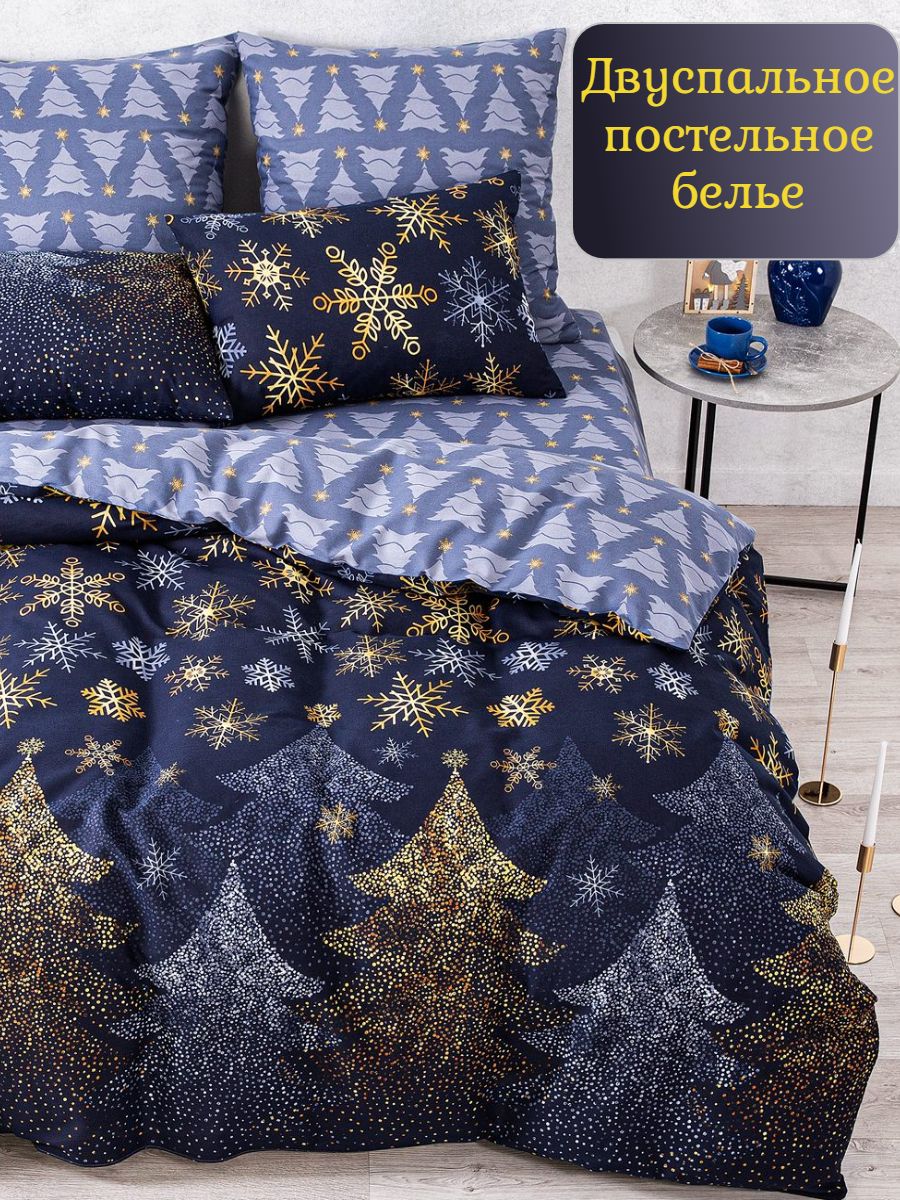 120 / золотой / Северная корона / Новогодний / 1650 / ивановский текстиль / Двуспальный / 175x215 / 1 пододеяльник, 1 простыня, 2 наволочки / 200x215 / Высокая / Унисекс / 4