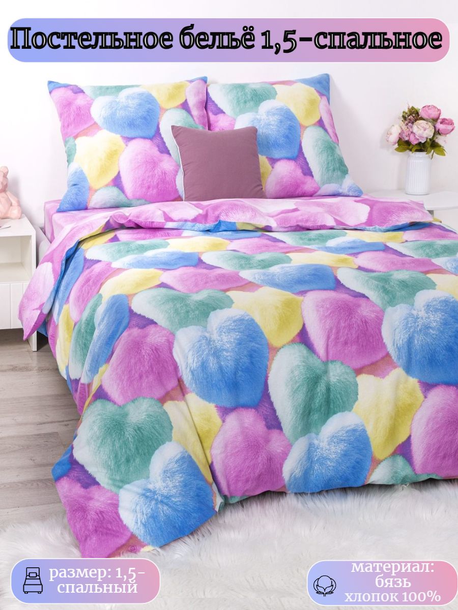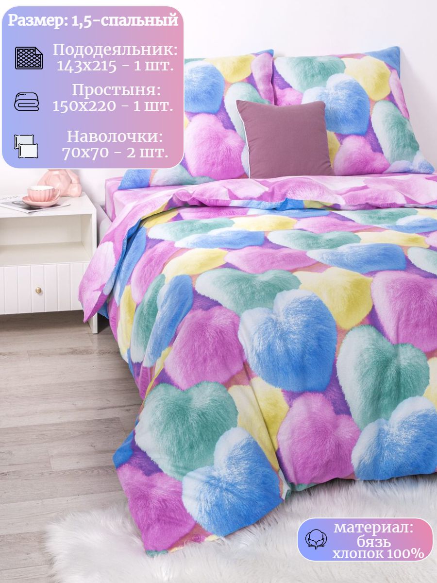 120 / разноцветный / Шери / Сердце / 1250 / ивановский текстиль / Полуторный / 143x215 / 1 пододеяльник, 1 простыня, 2 наволочки / 150x220 / Средняя / Унисекс / 4