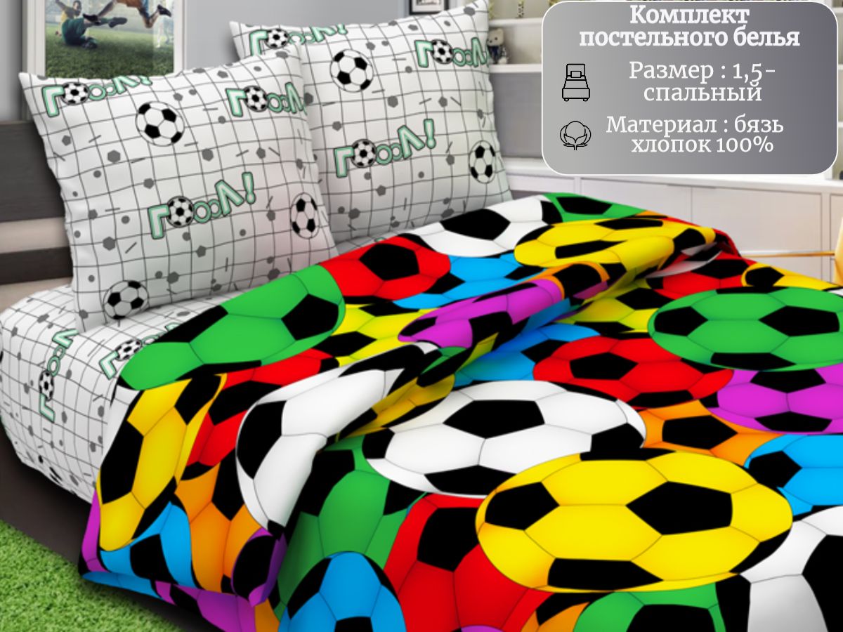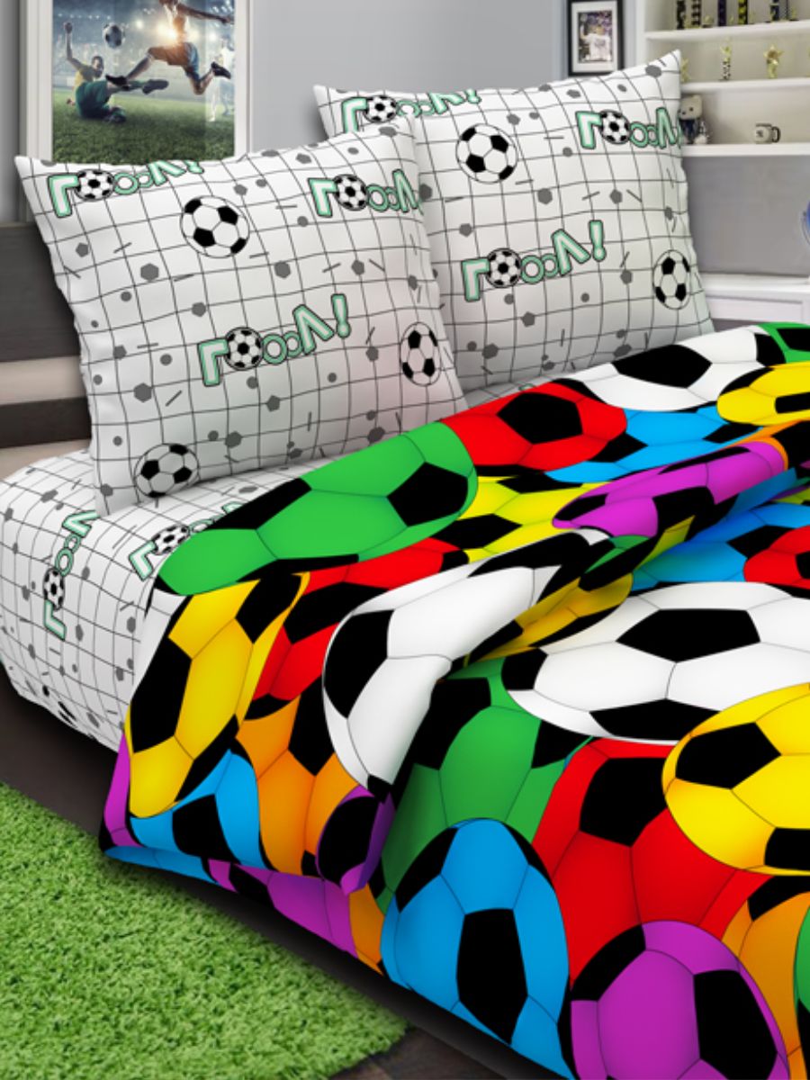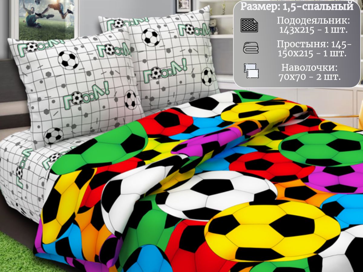 120 / разноцветный / Гол / Мячики / 1250 / ивановский текстиль / Полуторный / 143x215 / 1 пододеяльник, 1 простыня, 2 наволочки / 145x215 / Средняя / Унисекс / 4