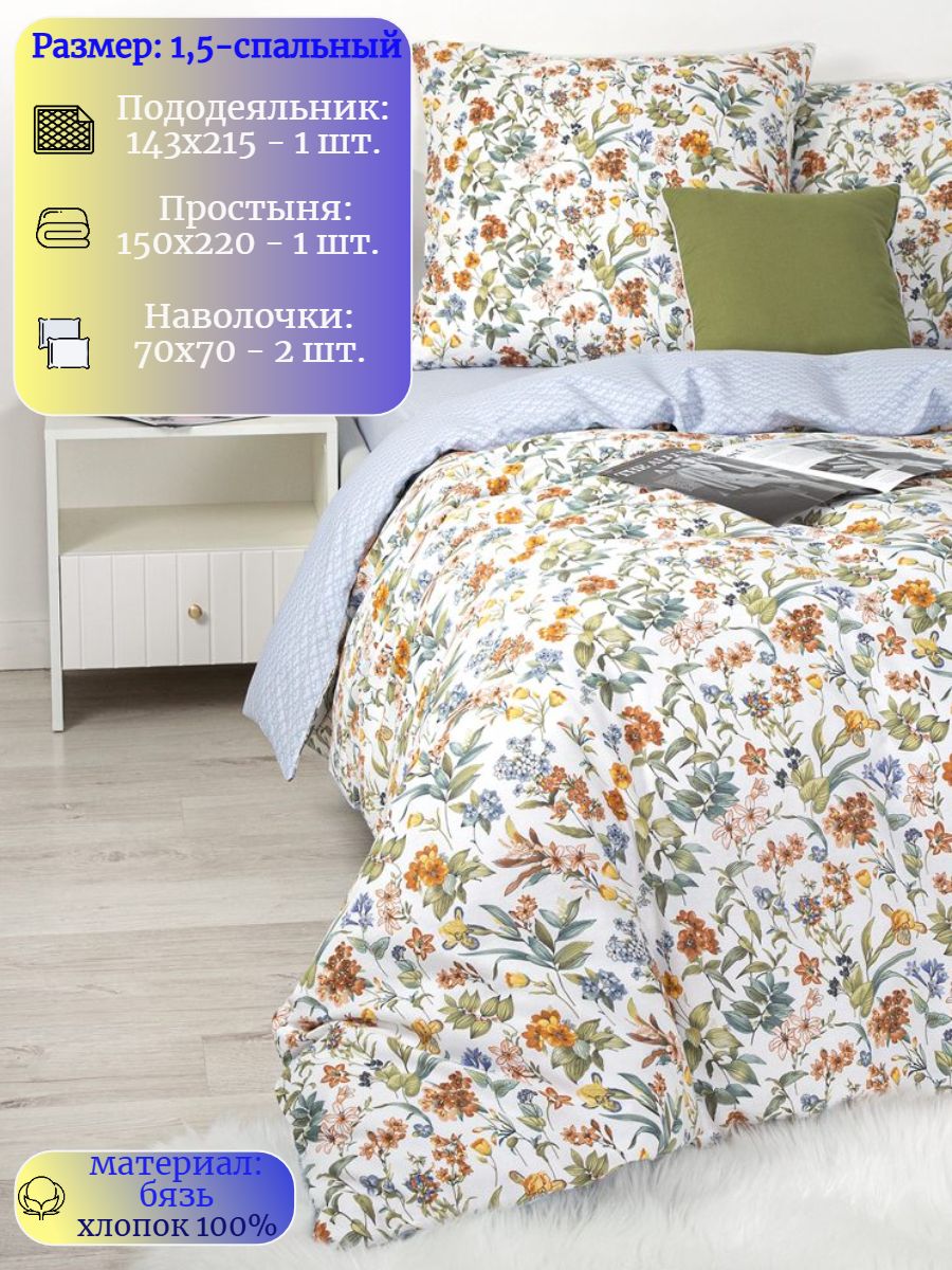 120 / бежевый / Белые цветы / Цветы / 1250 / ивановский текстиль / Полуторный / 143x215 / - / 150x215 / Средняя / Унисекс / 4