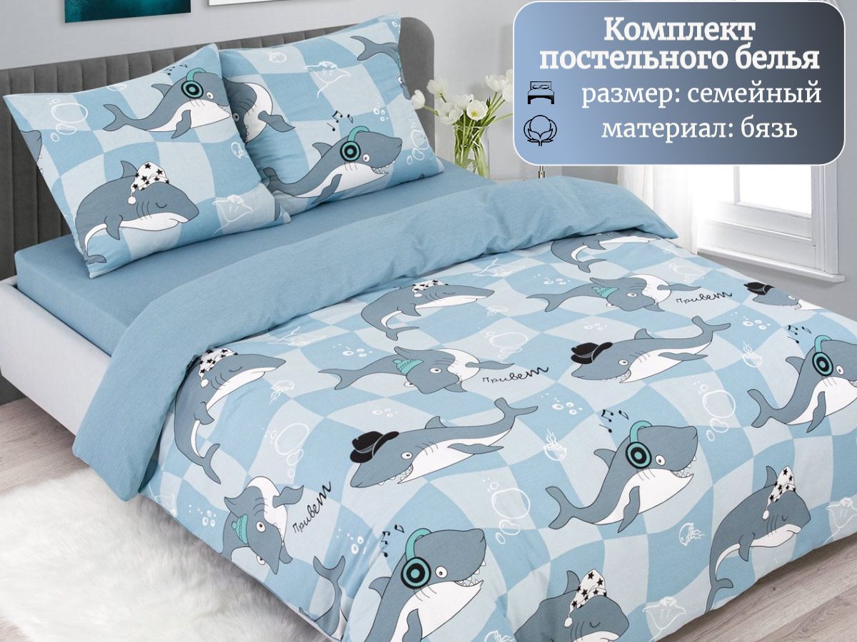 120 / голубой / Акулы / Акулы / 1850 / постельное белье семейное; постельное белье бязь; постельное белье семейное бязь; комплект постельного белья семейный; семейный комплект постельного белья; постельное белье семейный комплект; постельное белье с цветами / Семейный / 143x215 / 2 пододеяльника, 1 простыня, 2 наволочки / 220x240 / Средняя / - / 5